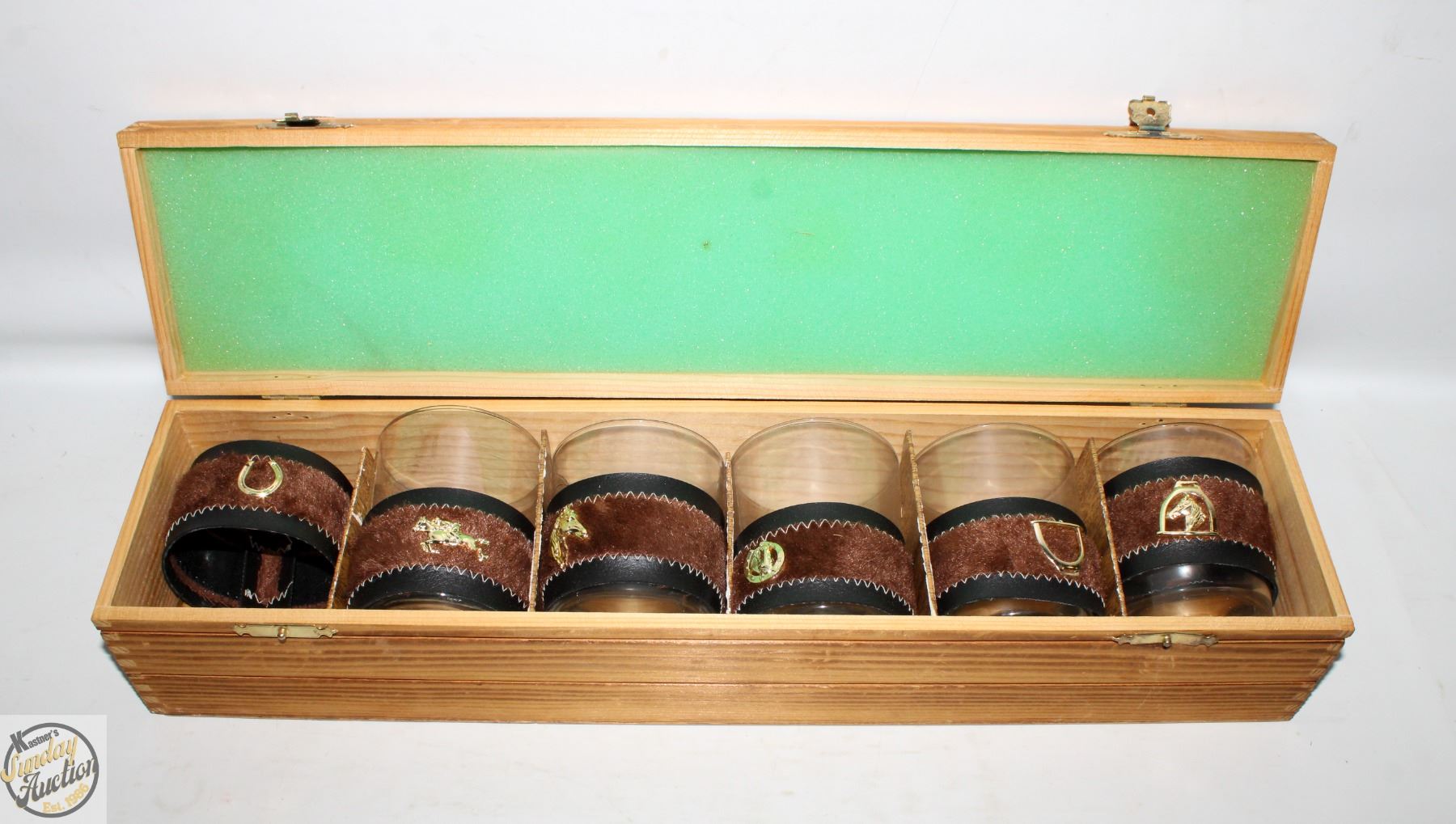 VINTAGE HORSE RACING GLASS SET, MISSING ONE GLASS