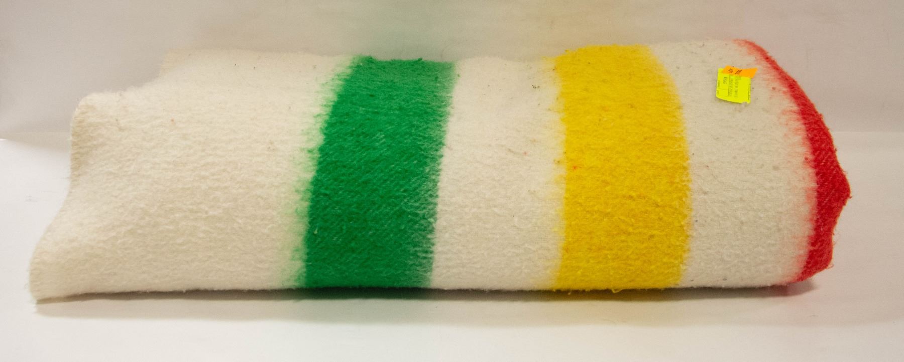 VINTAGE HUDSON BAY PRINT BLANKET PILLED-ESTATE