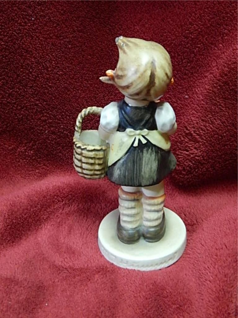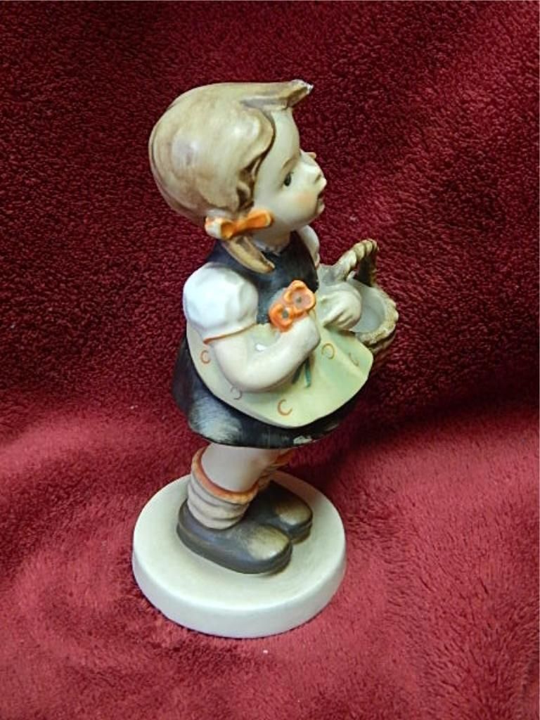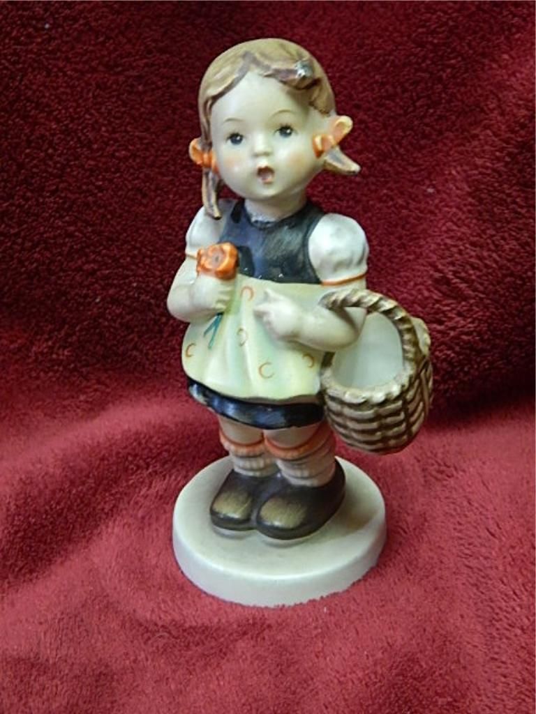 VINTAGE HUMMEL, GOEBEL FIGURE - GIRL WITH BASKET AND FLOWER - 98 - WEST GERMAN CERAMIC COLLACTABLE - SMALL CHIP ON HAIR - SEE PICTURE