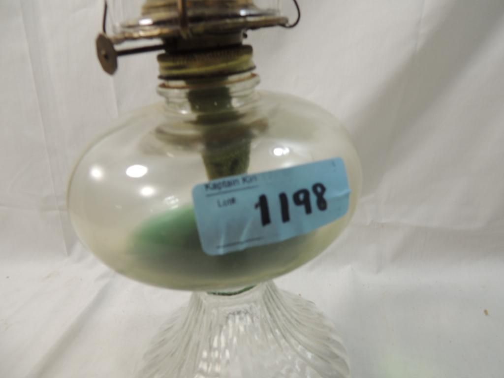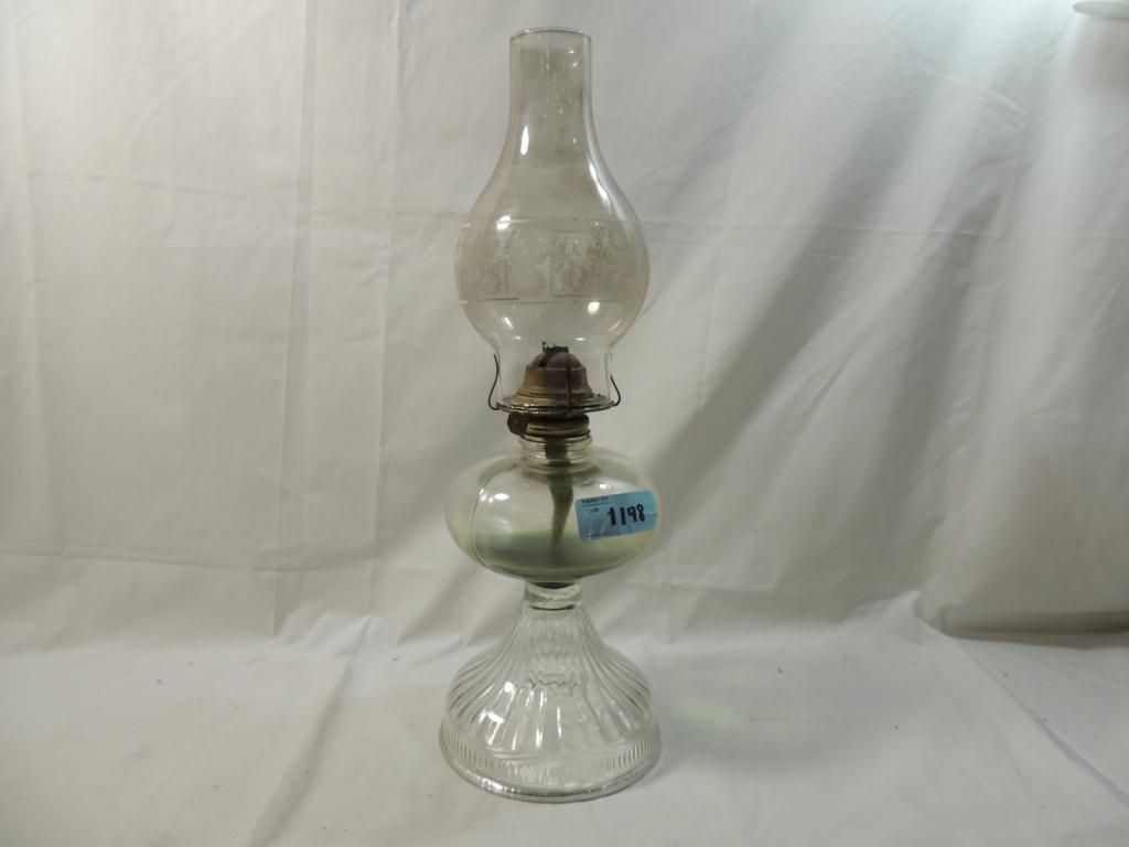 VINTAGE HURRICANE OIL LAMP. GLASS CLEAR BASE. AS SHOWN. SEE PHOTO FOR MORE DETAILS.