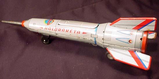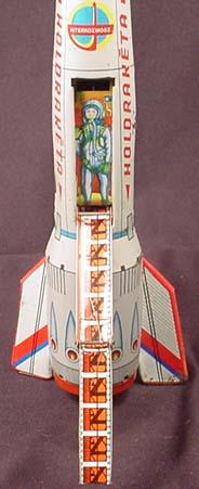 VINTAGE INTERKIZMOSZ HOLDRAKETA TIN ROCKET SHIP TOY - WORKS
