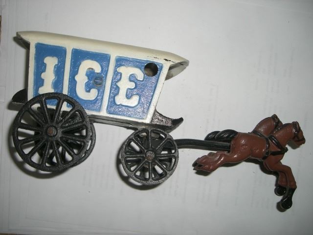 VINTAGE IRON TOY STAGECOACH *ICE* 2 PIECES-ALL METAL IRON HEAVY!! ITEM CAME OUT OF ESTATE!! ***Coin, Currency & All Items Listed in this auction - Grades, Conditions and Values are not Safe Deposit Coins LLC Responsibilty. Grades, Condition and Values are determined by Consigner(s) & Buyers ONLY