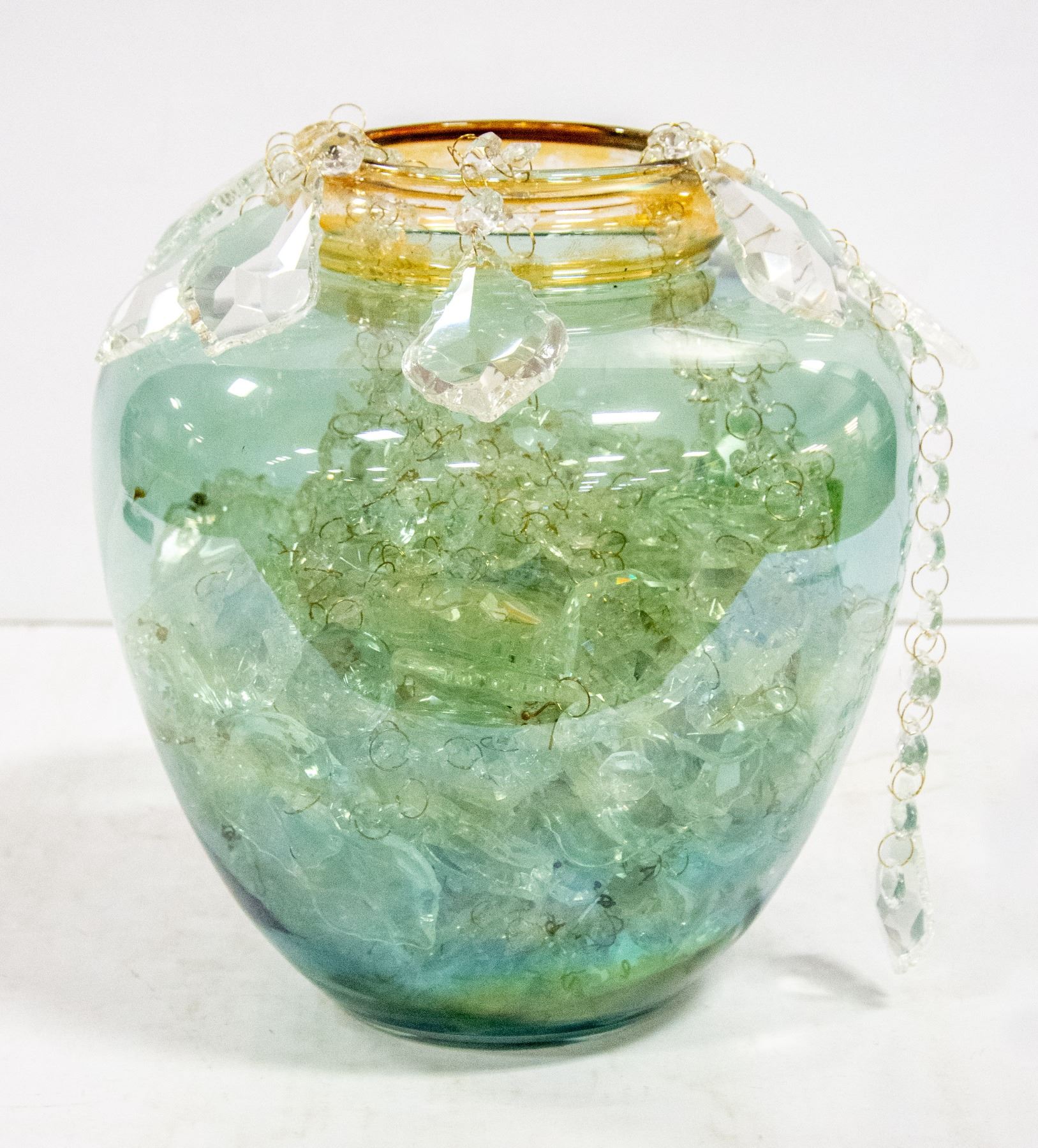 VINTAGE CRYSTAL CHAINS, TEARDROPS, GLOBES, ETC. (11"-TALL X 10"-DIAMETER.)