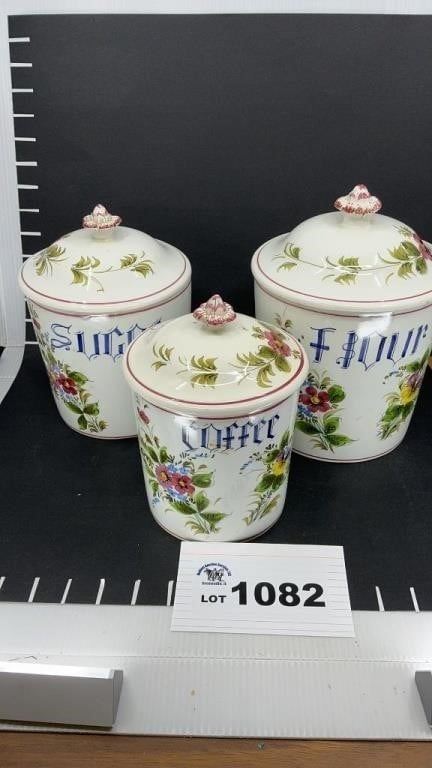 VINTAGE ITALIAN CERAMIC CANISTERS W LIDS 3
