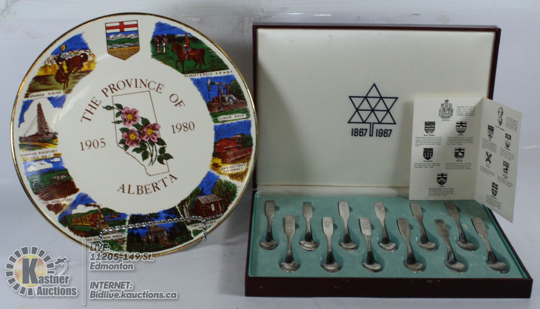 CANADA SPOON COLLECTION 1867-1967 ONEIDA SILVER SMITH CANADA W/THE PROVINCE OF ALBERTA COMMEMORATIVE PLATE 1905-1980