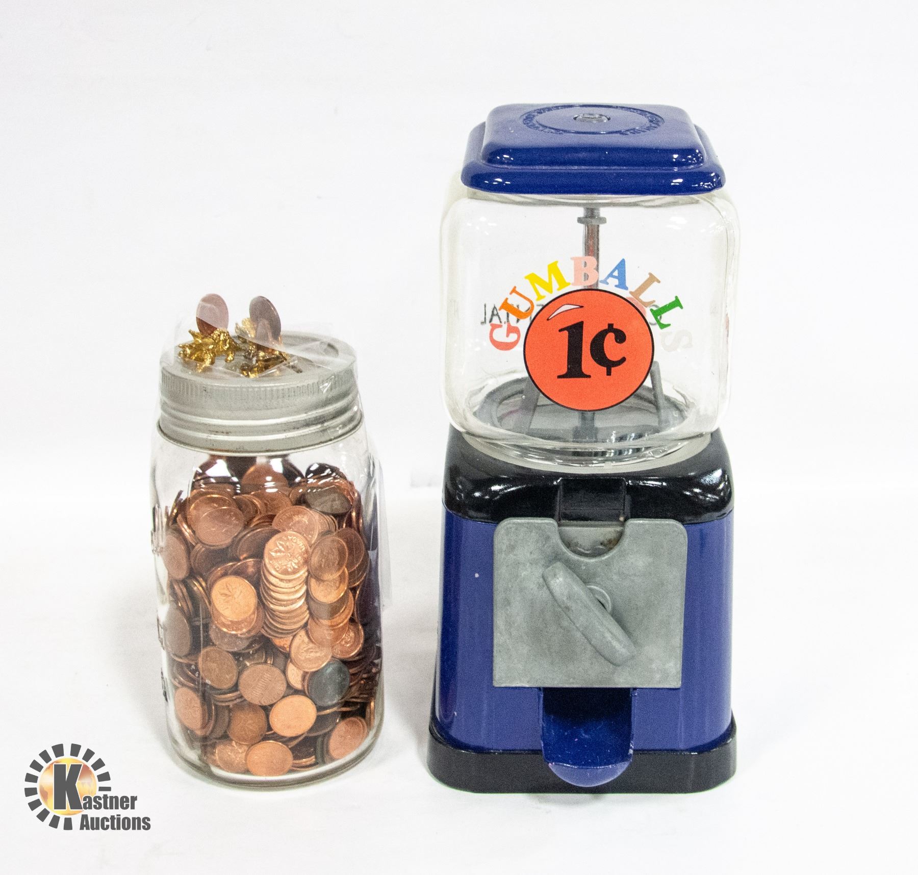 W/PENNIES & 3 PENNY HOLDERS W/CONTINENTAL METAL, 1 BUBBLE GUM MACHINE MADE IN CANADA (LID NEEDS TIGHTING) **ALL ITEMS MUST BE REMOVED BY 5PM SATURDAY, FEBRUARY 8TH 2025. ALL REMAINING ITEMS WILL BE SUBJECT TO A $6.00 PER DAY STORAGE CHARGE. ANY ITEMS REMAINING AFTER MONDAY, MARCH 3RD 2025 WILL BE CONSIDERED FORFEITED. NO REFUNDS WILL BE ISSUED FOR FORFEITED ITEMS. TO SCHEDULE A PICK UP APPOINTMENT CLICK HERE