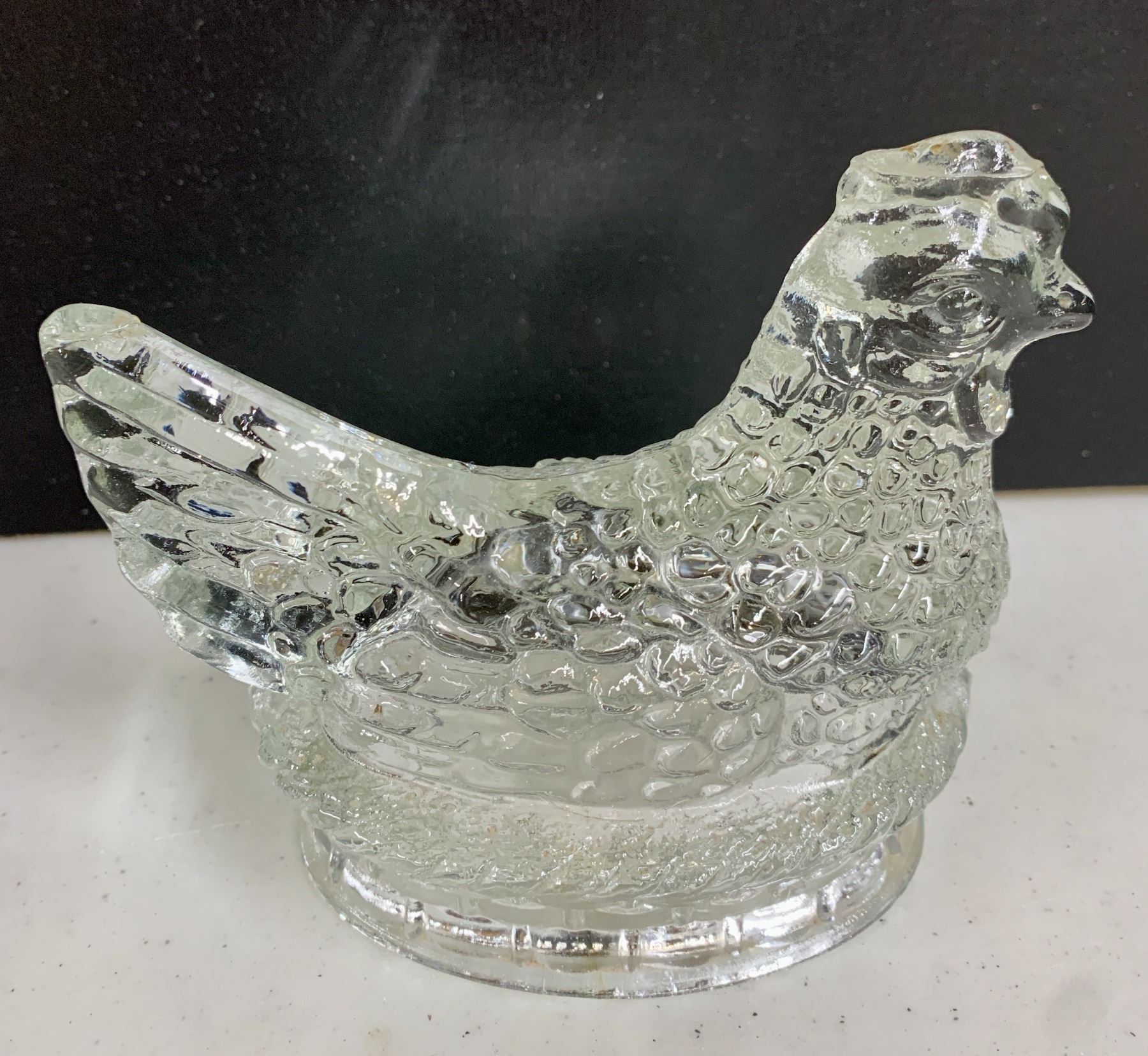 VINTAGE J.H MILLSTEIN JEANETTE GLASS 1940S HEN GLASS CANDY HOLDER