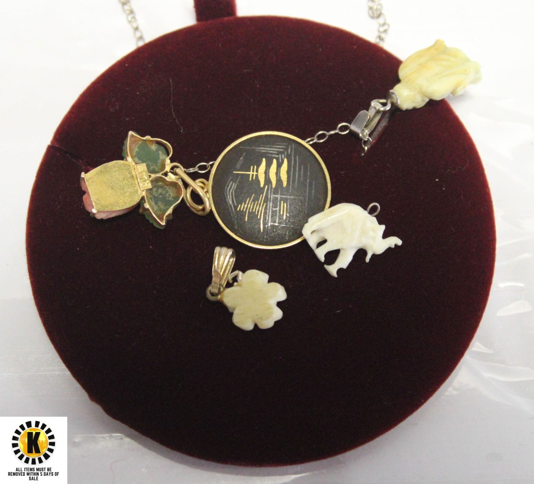 IVORY ELEPHANT, TEMPLE BUDDHA NECKLACE CHARMS TOGETHER-ESTATE
