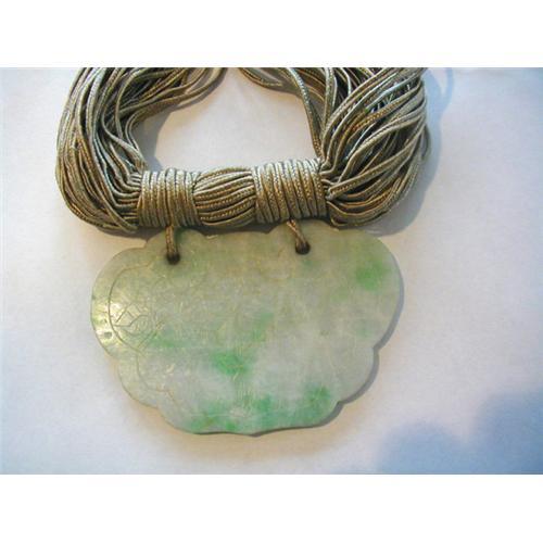 <tr><td>Title:VINTAGE JADE PENDANT on MULTI-SILK CORDS</td></tr>