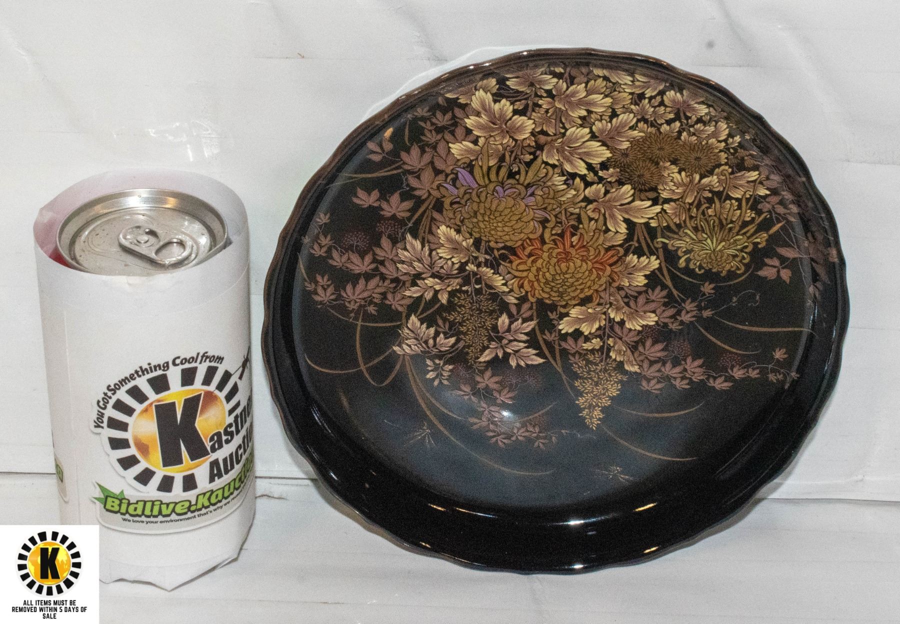 HAND CRAFTED BLACK & GOLD FLORAL & DRAGONFLIES DISH DESIGNED BY SHIBATA JAPANESE CERAMICS
