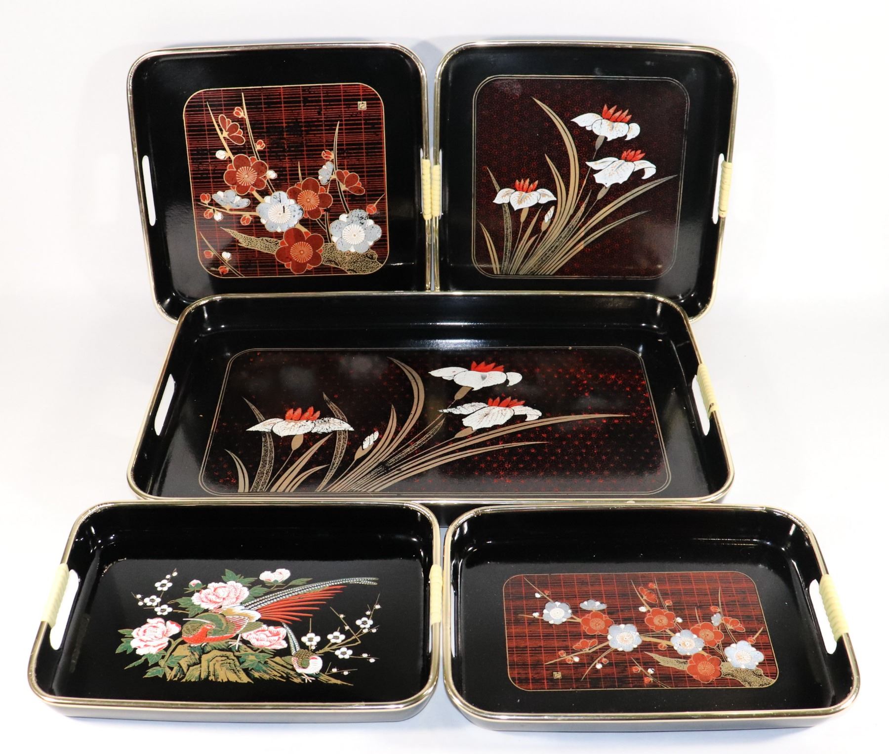 VINTAGE JAPANESE LACQUER WARE TRAYS 5 PIECES