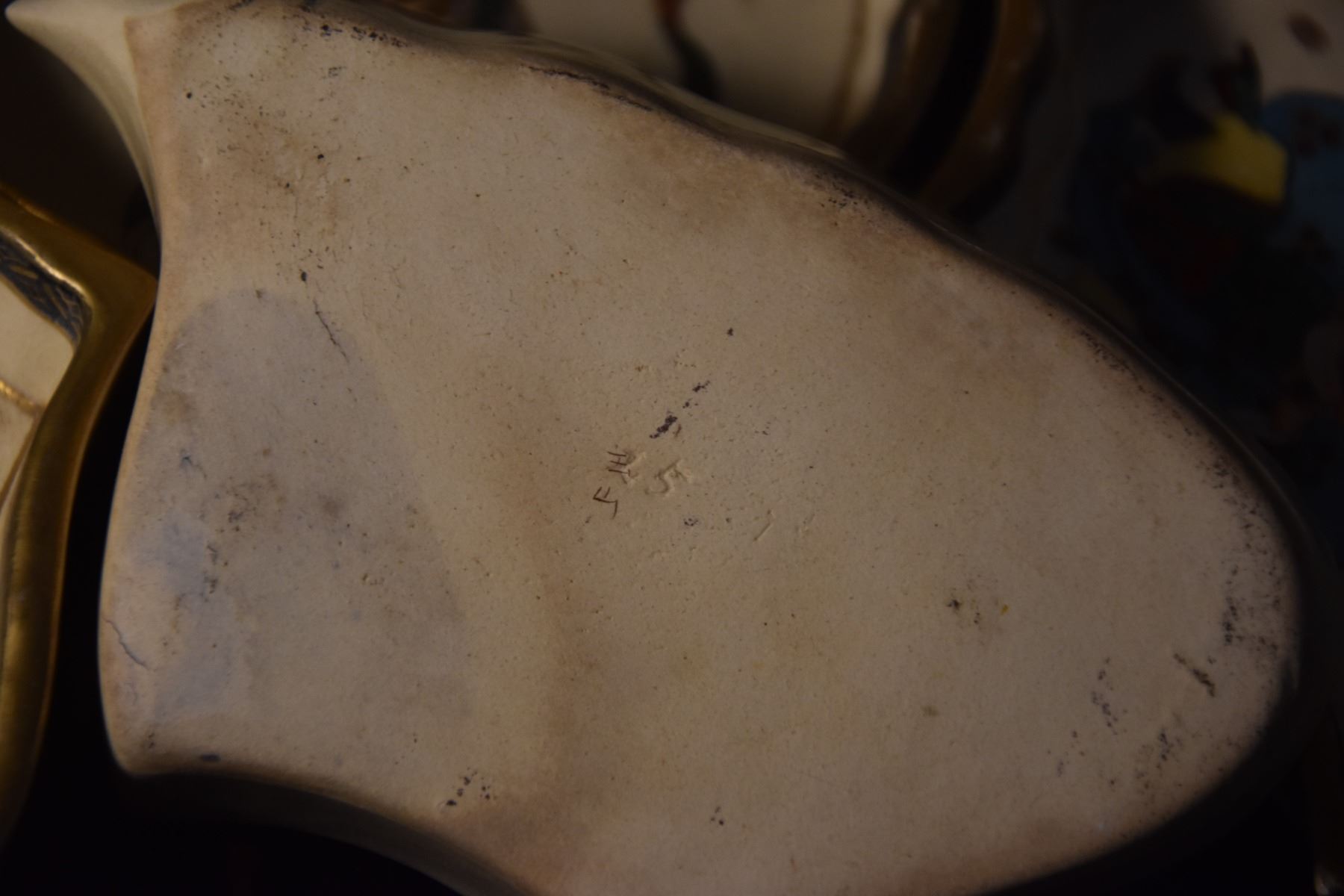 VINTAGE JAPANESE PORCELAIN SWEET MEAT DISH ON STAND, 7 IMMORTALS (13")