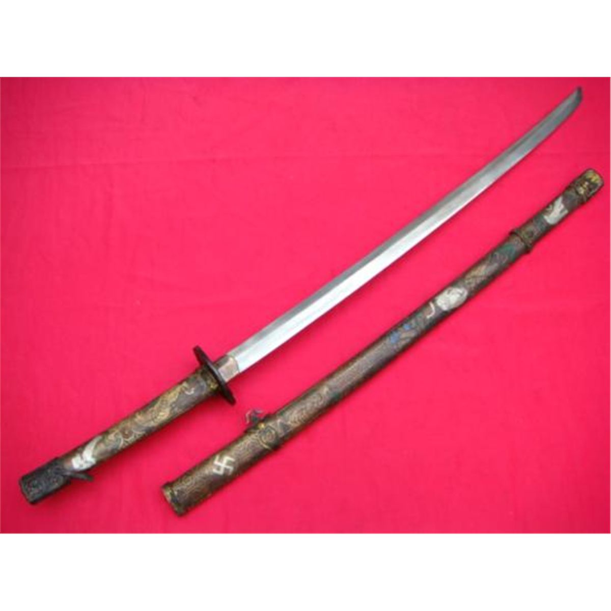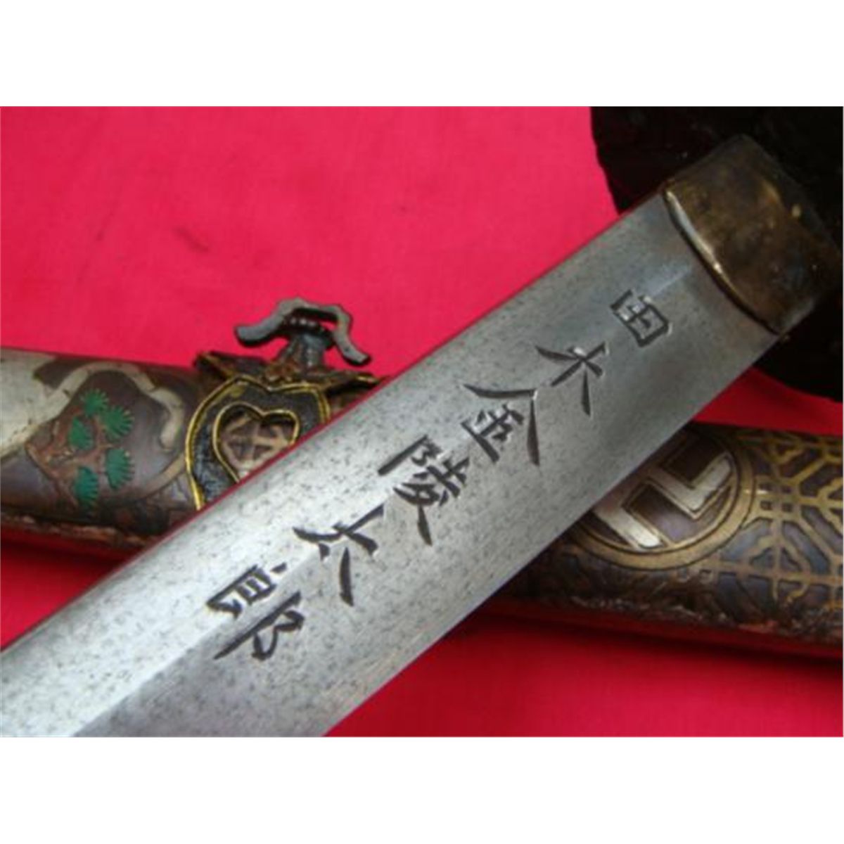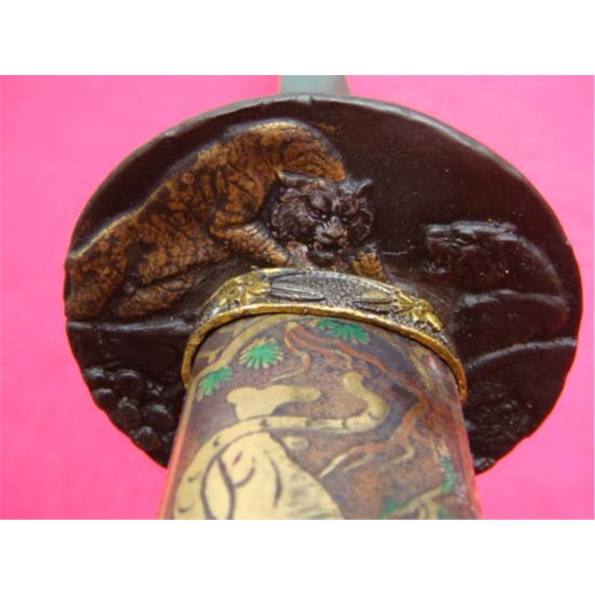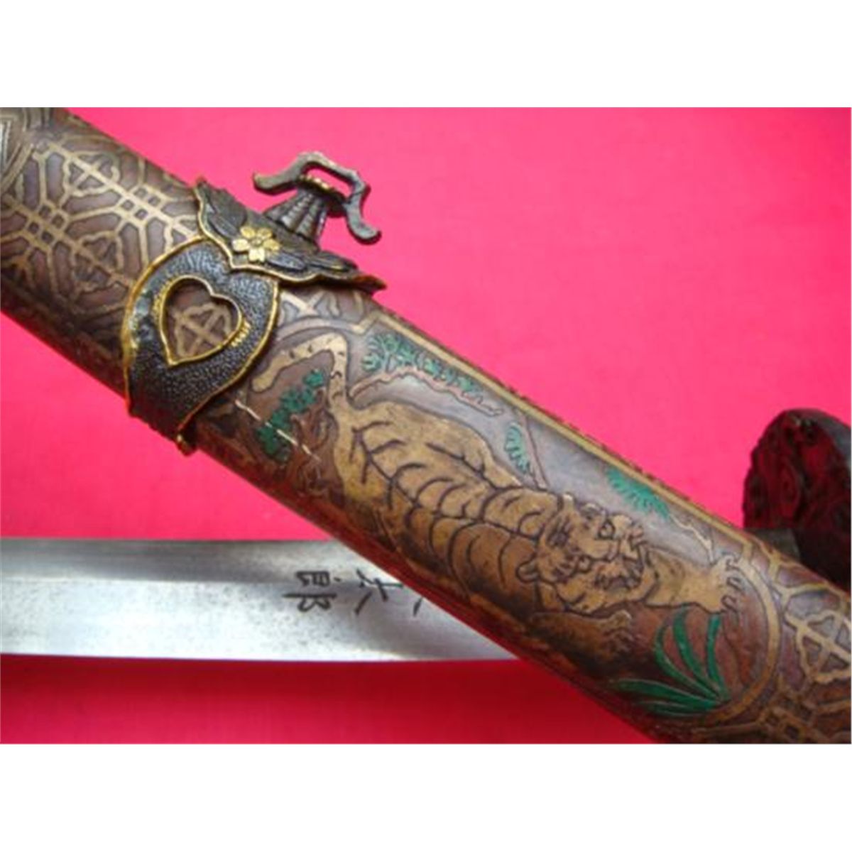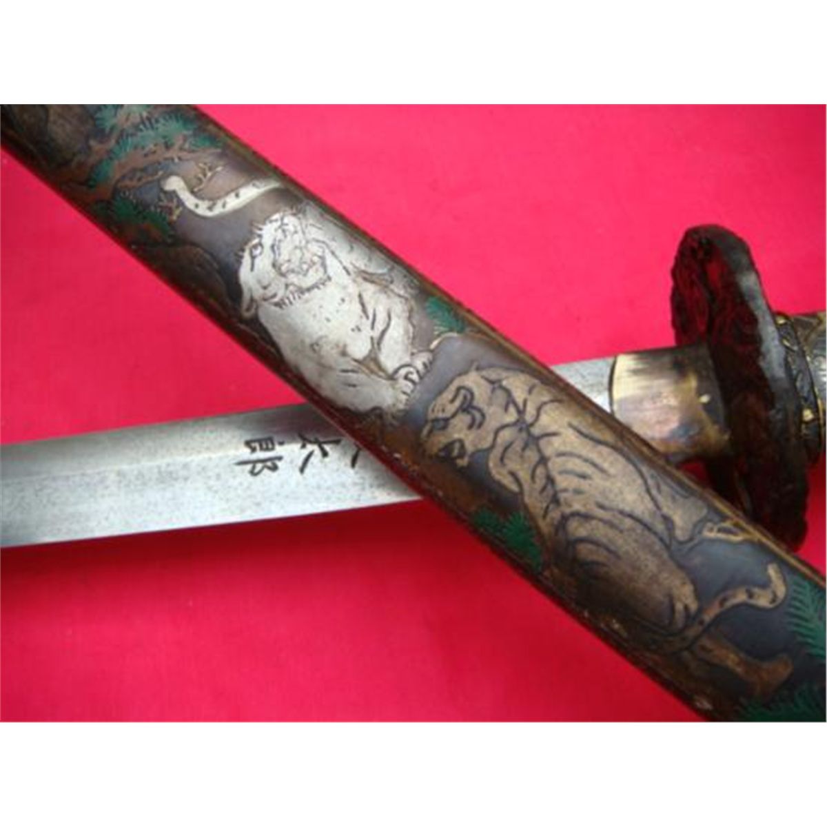 VINTAGE JAPANESE SAMURAI SWORD, ELEGANT COPPER SAYA DEPICTING TIGERS, SIGNED MWF1700
