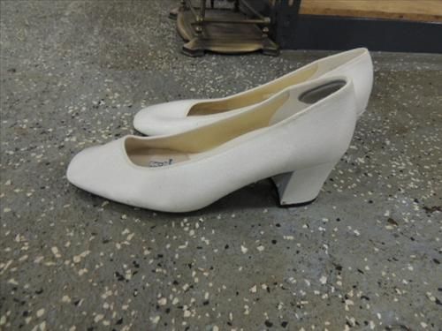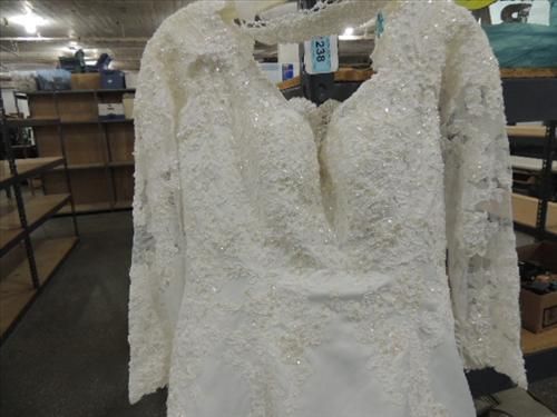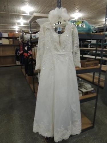 VINTAGE JASMINE SIZE 18 BEADED WEDDING DRESS, SHOES & BEADED TIARA. AS SHOWN. VIEW PICTURE FOR DETAIL.