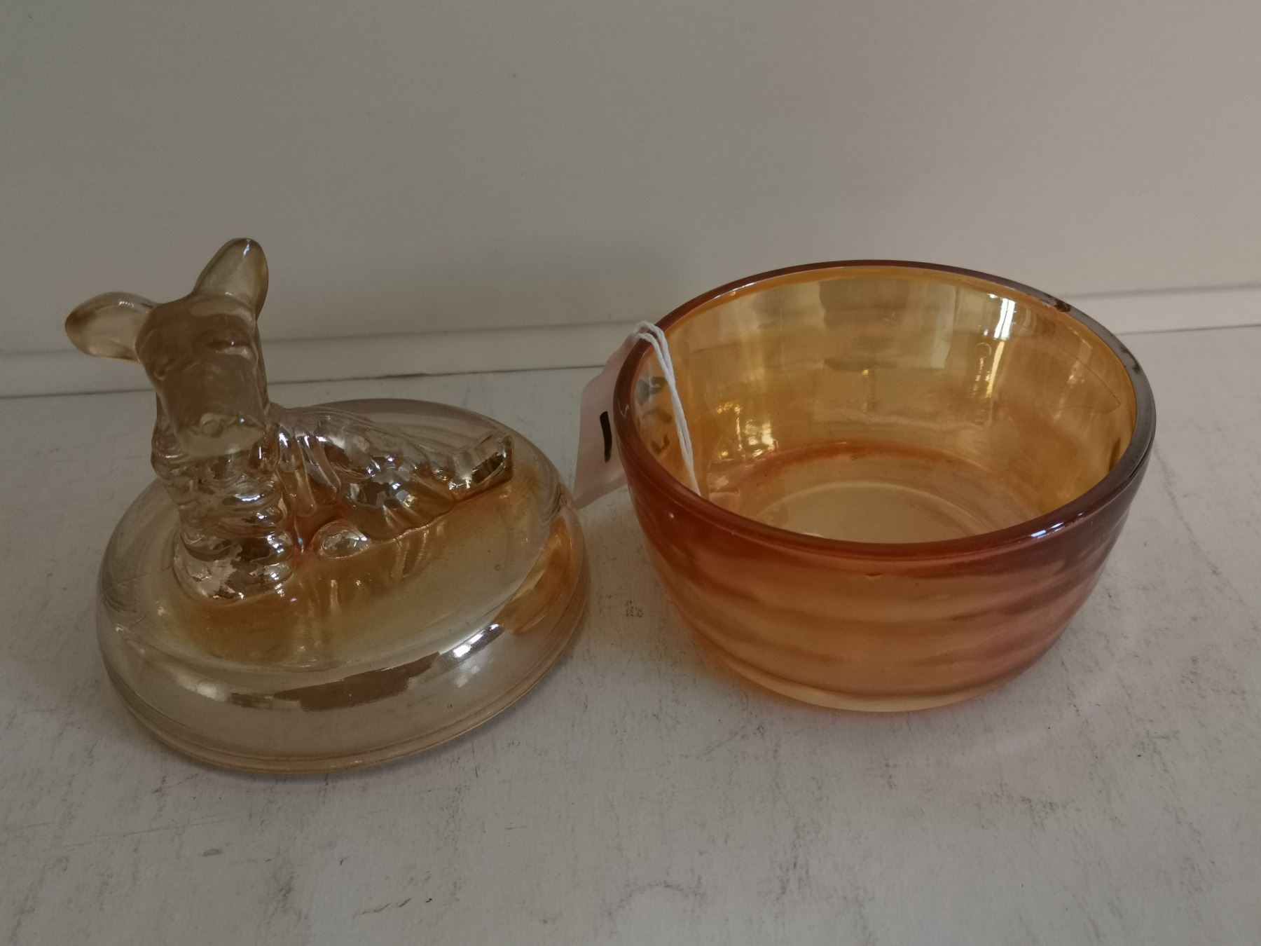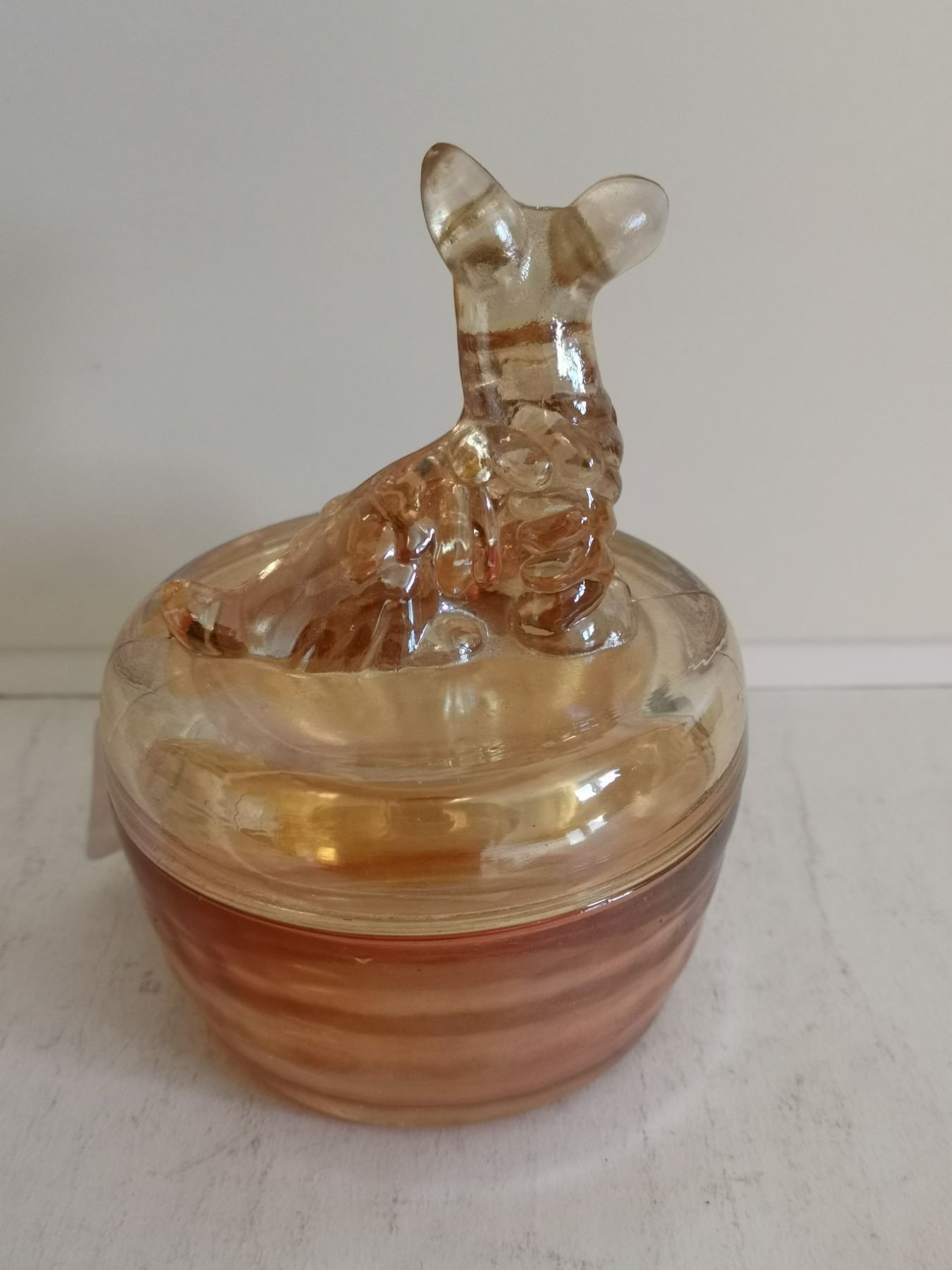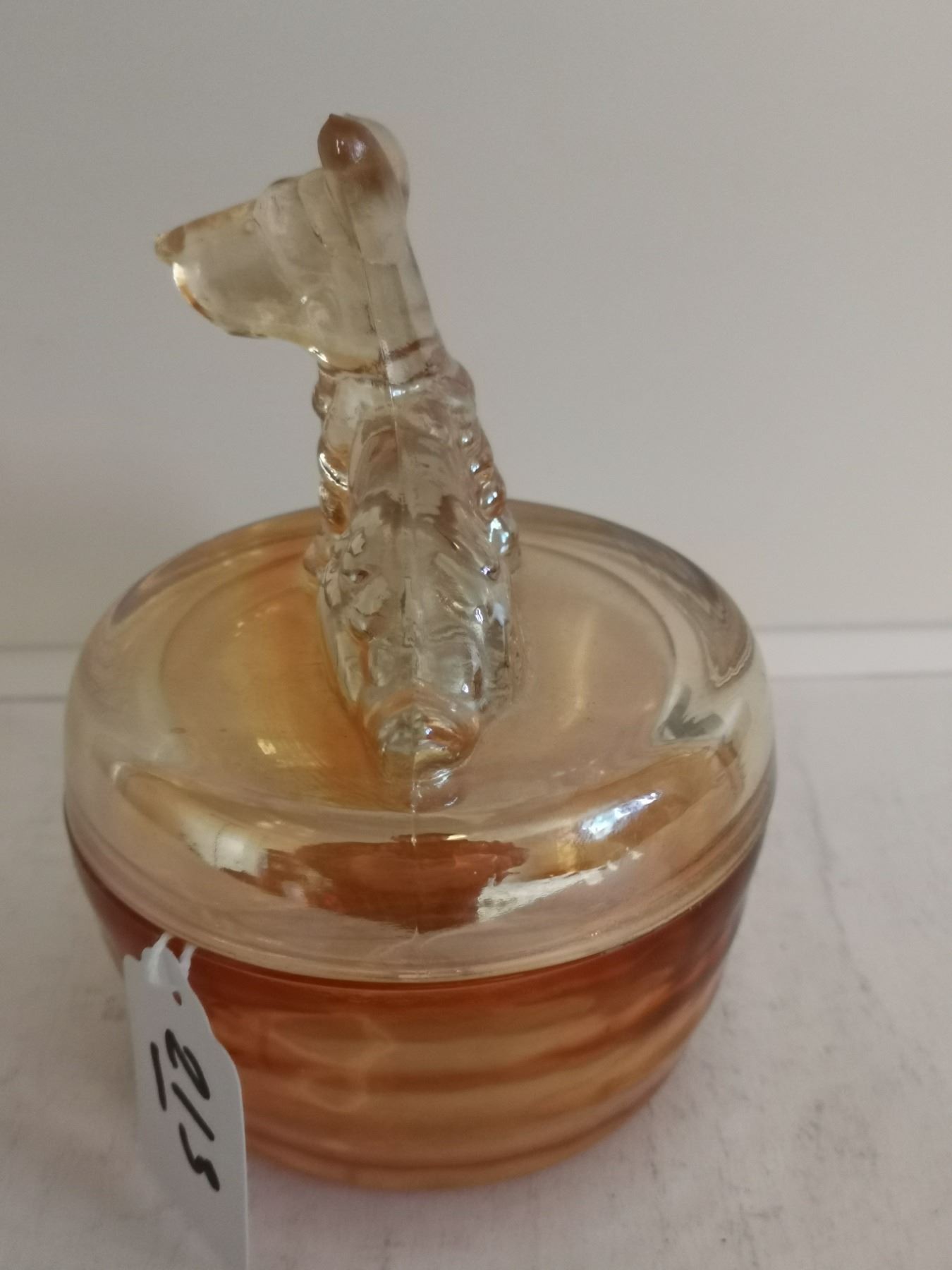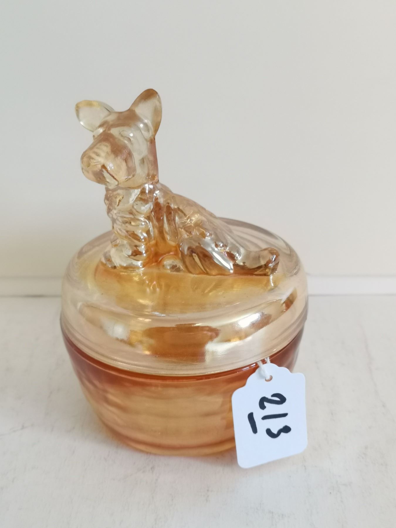 VINTAGE JEANNETTE CARNIVAL GLASS SCOTTIE-DOG-CANDY DISH