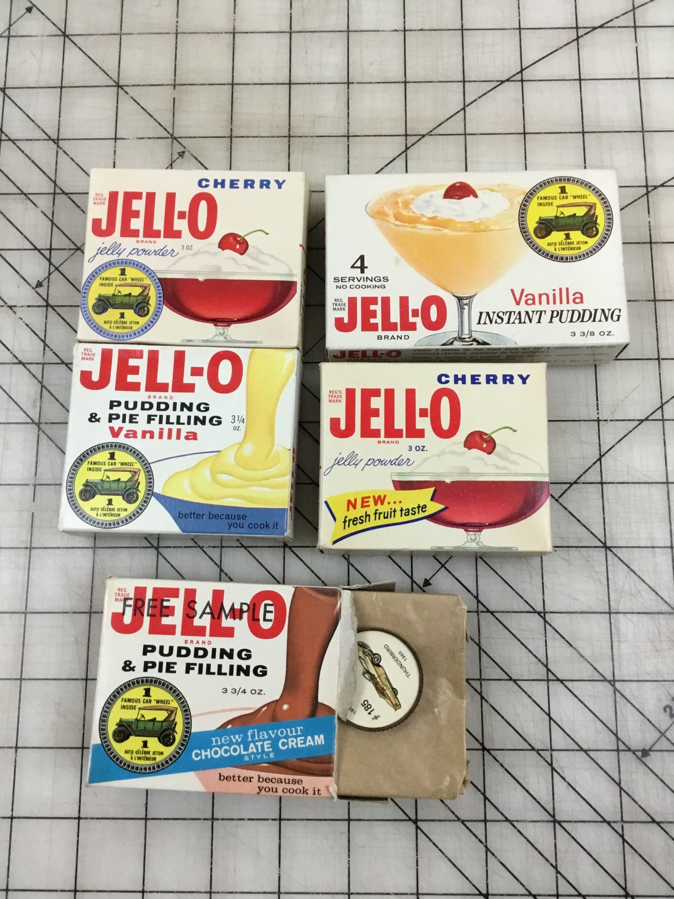 VINTAGE JELLO PACKAGES WITH CAR WHEELS ONE OPENED
