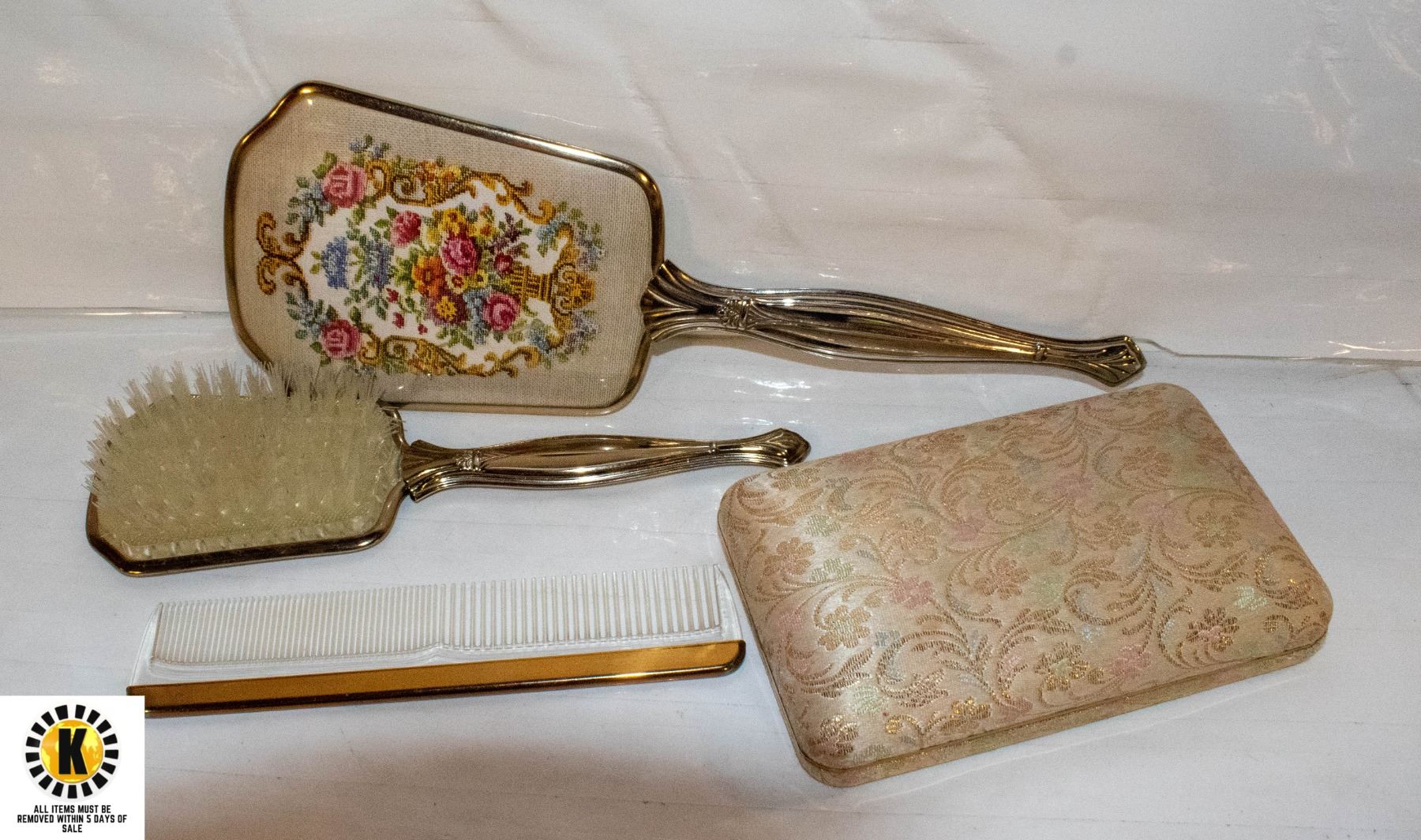 VINTAGE JEWELLERY BOX & VANITY SET- BRUSH, MIRROR