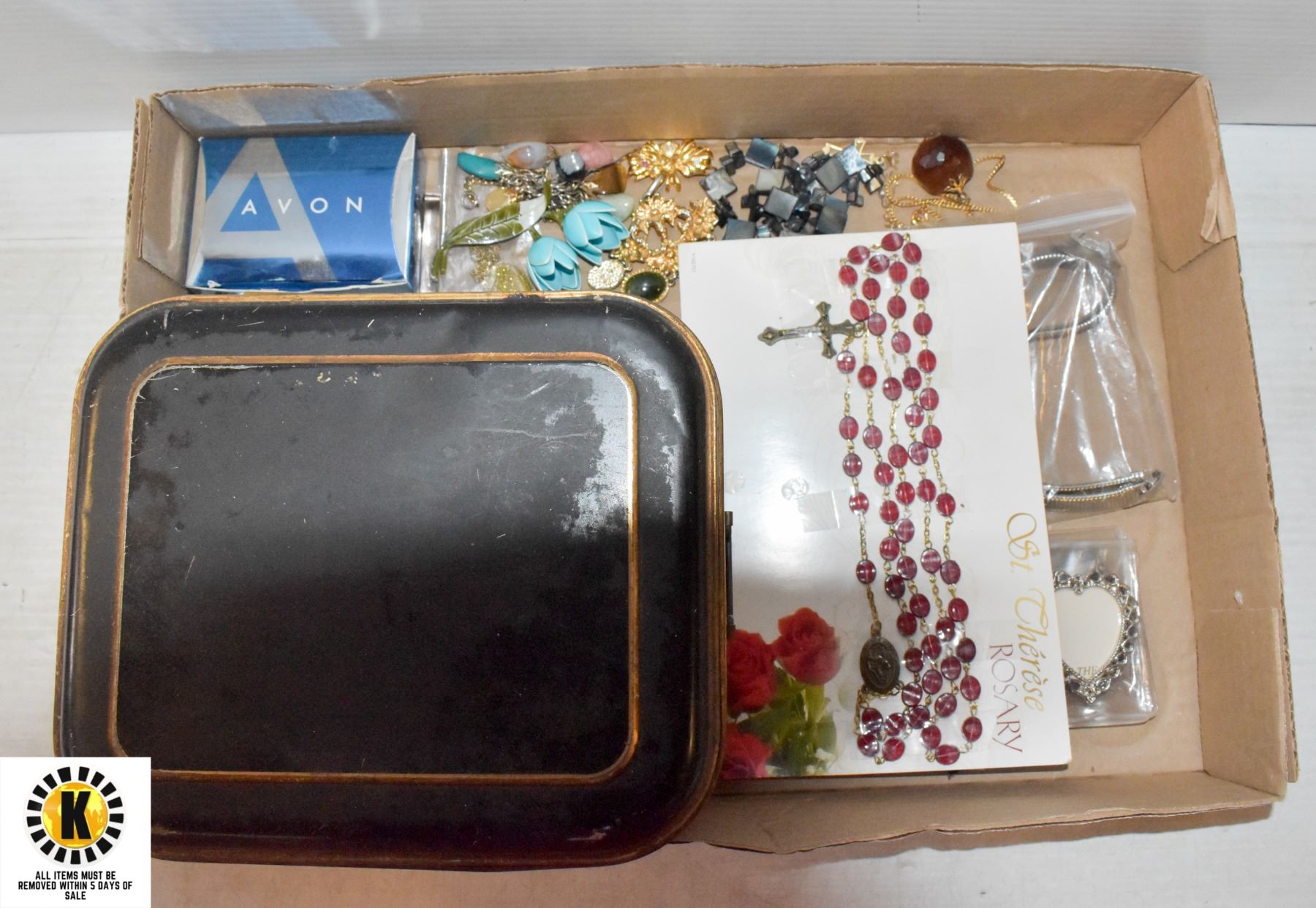 VINTAGE JEWELRY TIN WITH VINTAGE JEWELRY