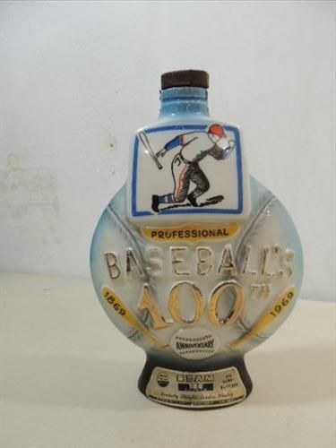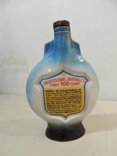 BREWERIANA VINTAGE JIM BEAM WHISKEY BASEBALL CERAMIC DECANTER 1OOTH YEAR ANNIVERSARY. AS SHOWN. VIEW PICTURE FOR DETAIL.