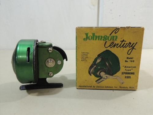 VINTAGE FISHING JOHNSON CENTURY MODEL 100 SPINNING REEL. IN ORIGINAL BOX. AS SHOWN. VIEW PICTURE FOR DETAIL.