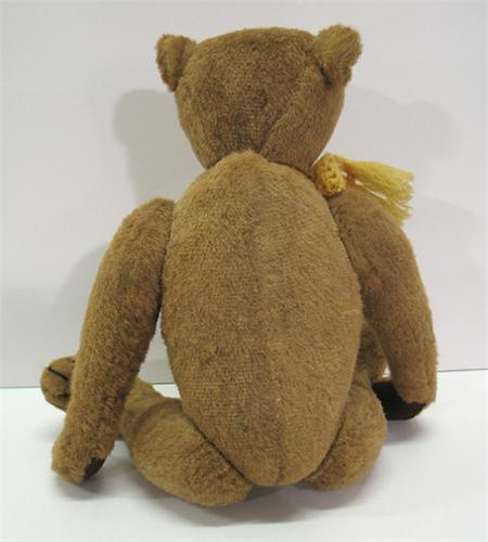 VINTAGE JOINTED TEDDY BEAR. Has yellow scarf around neck. Very good overall condition. 14" H