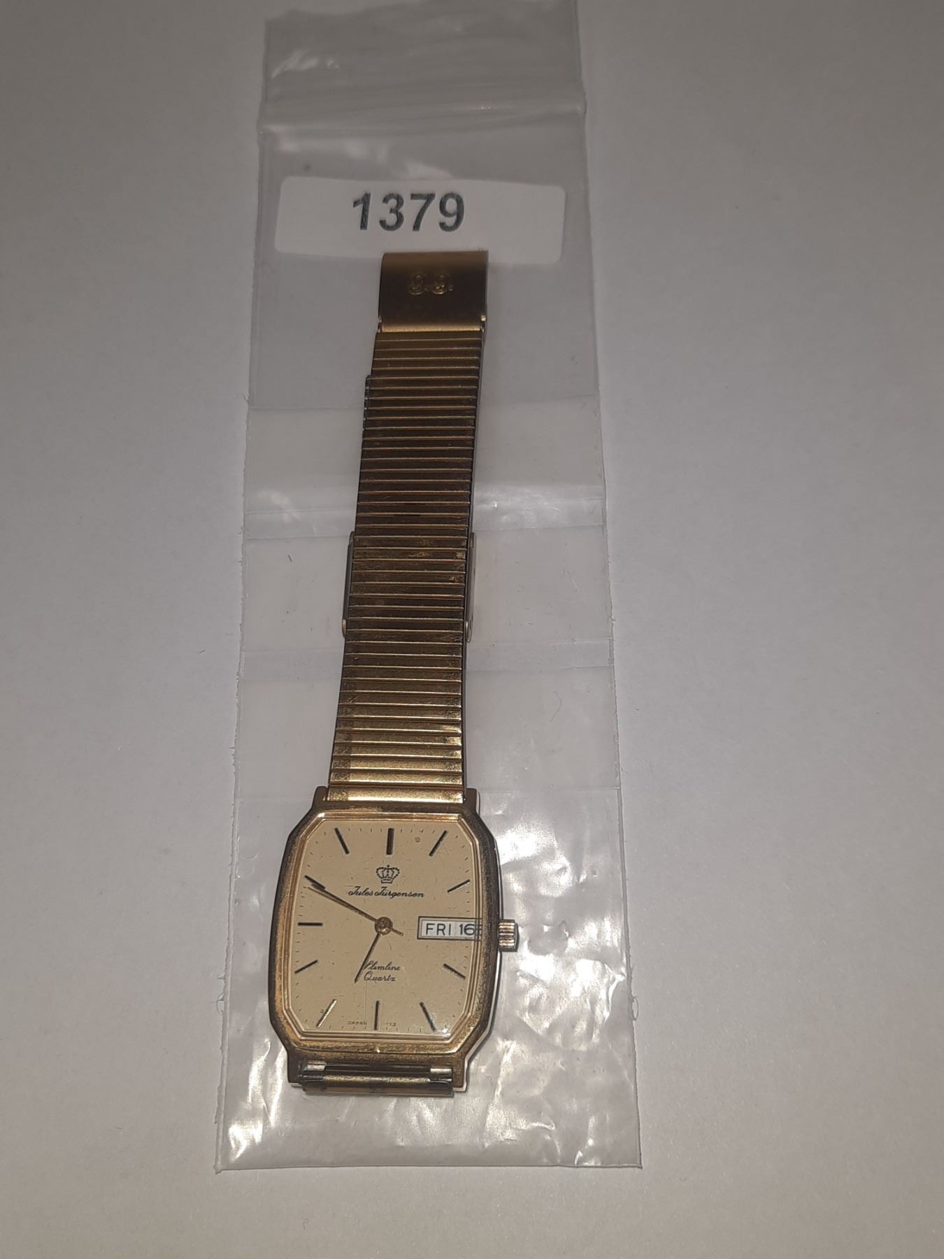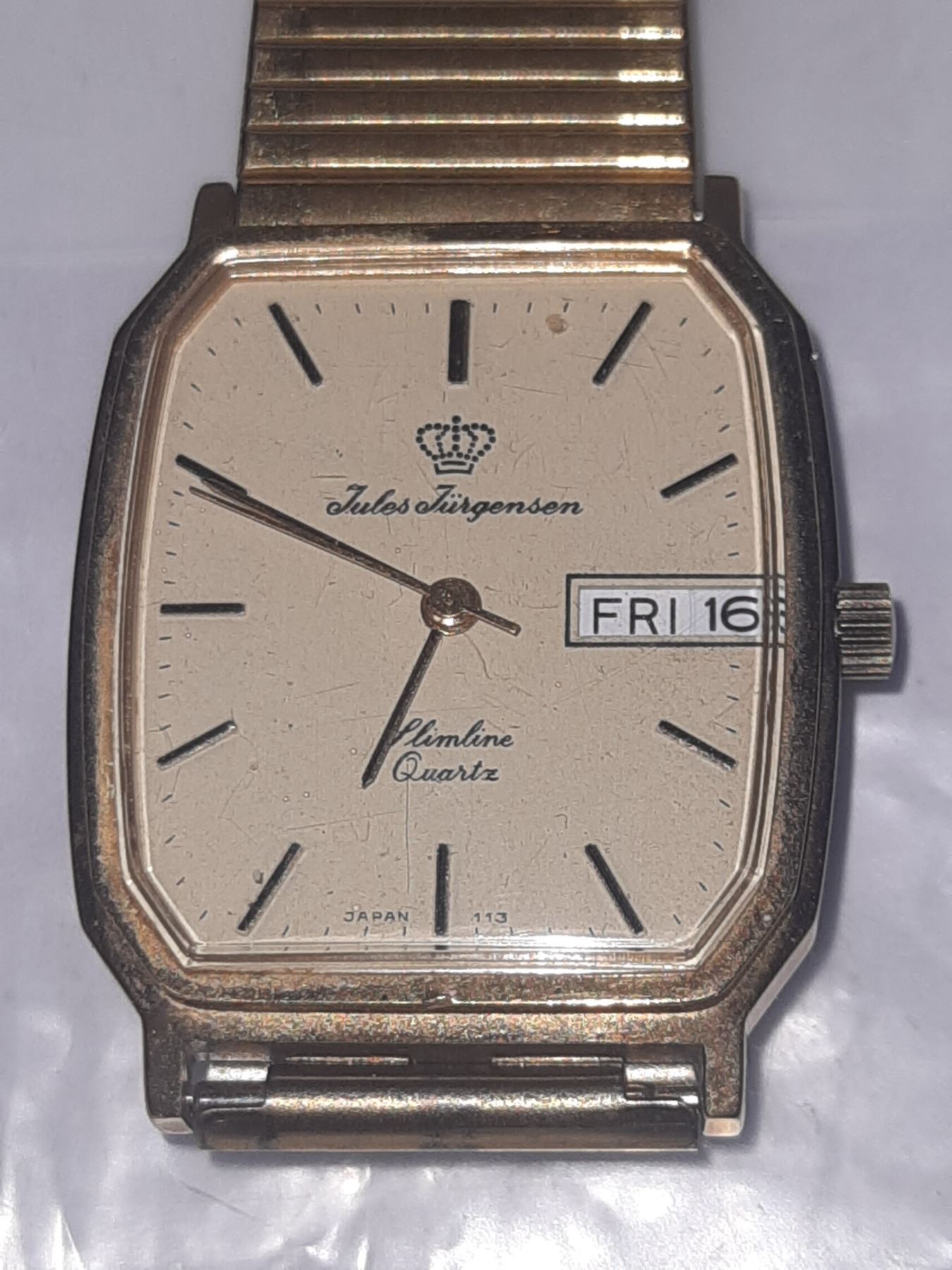 VINTAGE JULES JORGENSON QTZ DAY/DATE @3 NEW BATTERY, RUNS