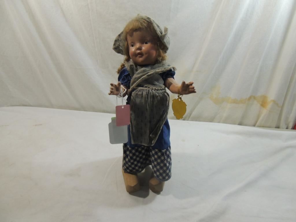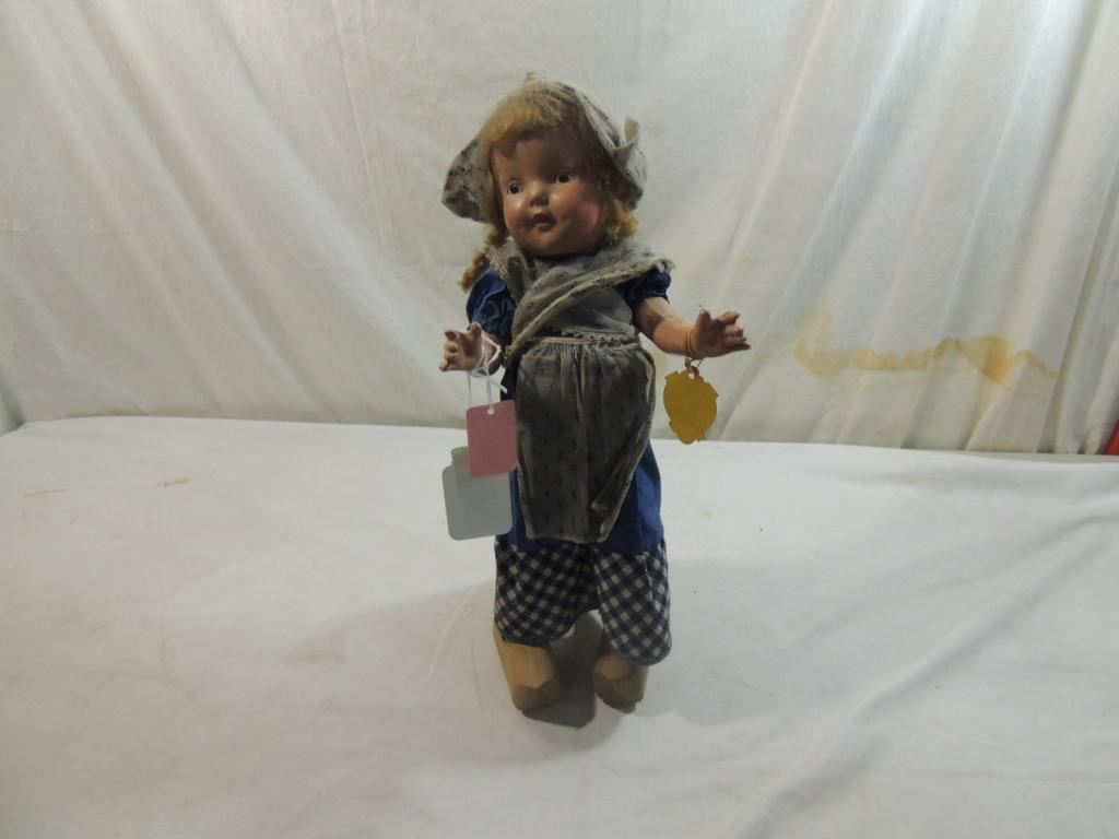 FROM HOLLAND VINTAGE DOLL, WOODEN SHOES, DUTCH DOLL, COLLECTIBLE DOLL, COLLECTORS DOLL, STAND INCLUDED, FROM PRIVATE DOLL COLLECTION, AS SHOWN SEE PHOTO FOR MORE DETAILS.