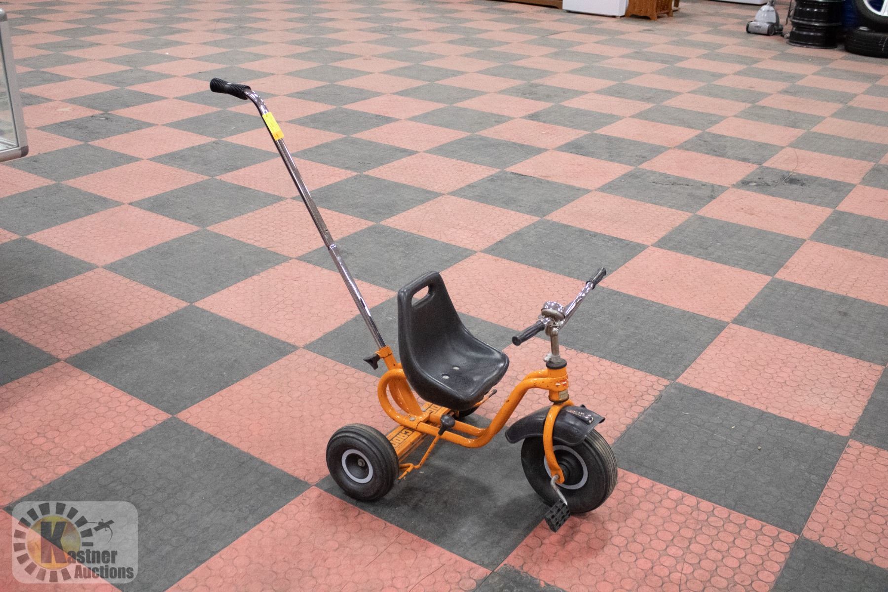 VINTAGE KIDS CADDY TRIKE WITH PUSH BAR BACK