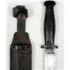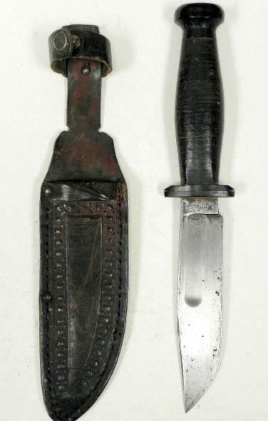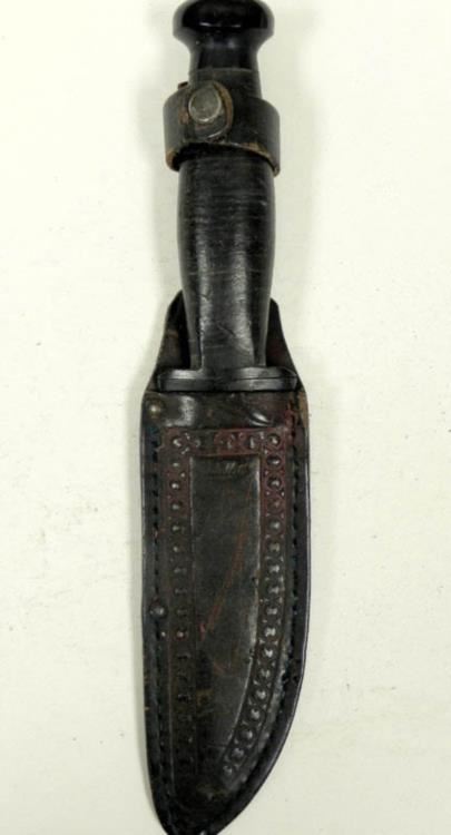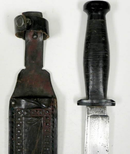 HERE IS A VINTAGE KINFOLKS FIXED BLADE DAGGER & SCABBARD. IT HAS A 5" BLADE--LEATHER WASHER GRIP-O/A DAGGER LENGTH 9 1/2"--TOOLED LEATHER SCABBARD-MARKED KINFOLKS-TOP SECURING SNAP.