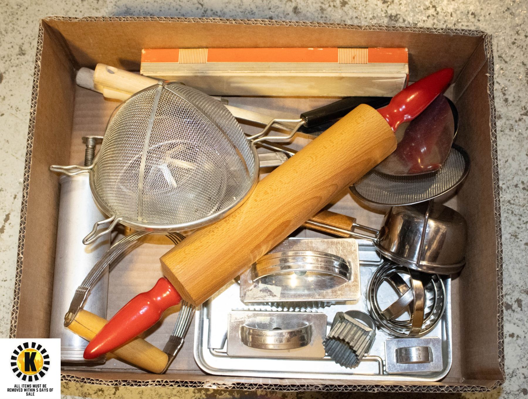 VINTAGE KITCHEN UTENSILS/GADGETS- BOX LOT ASST.