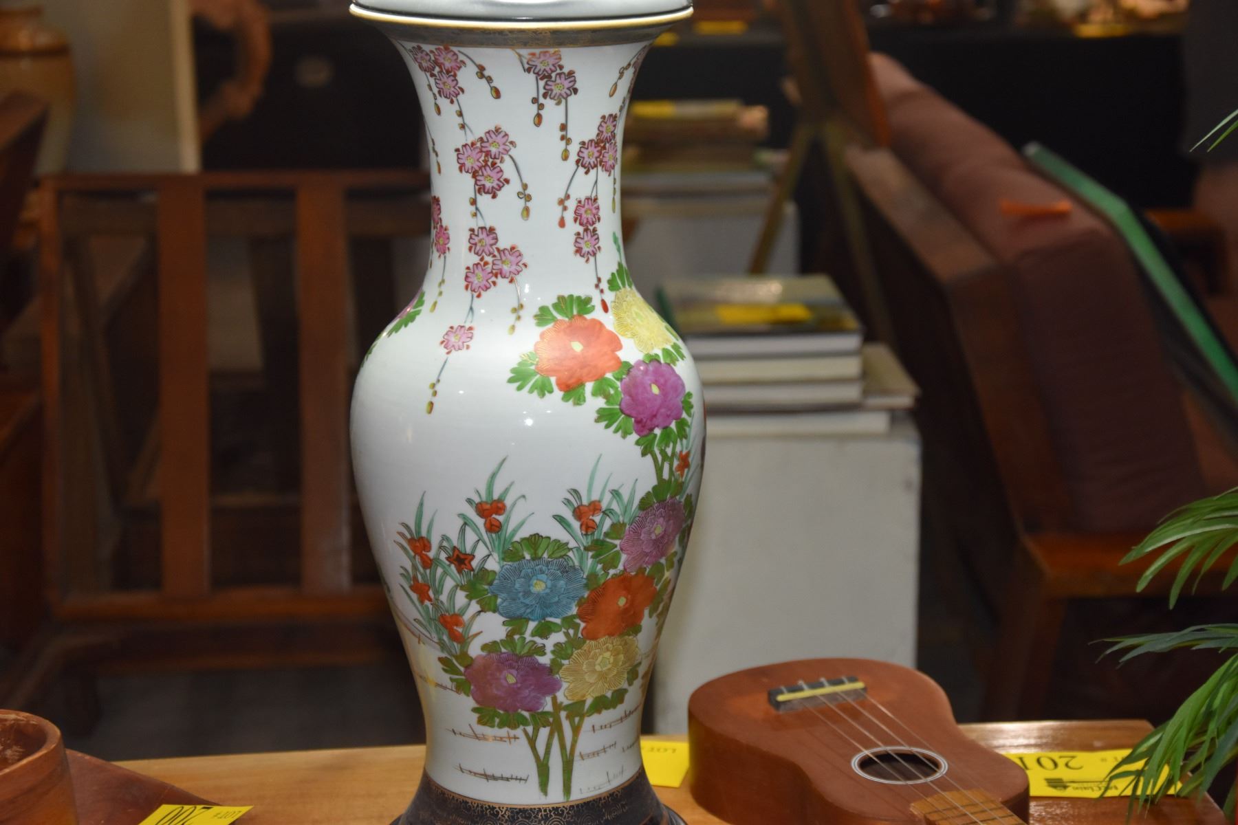 VINTAGE KUTANI JAPANESE PORCELAIN LAMPS W/SHADES (PAIR)