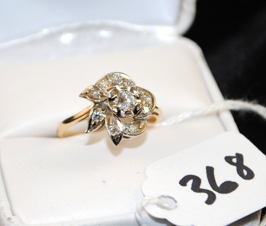 VINTAGE LADIES 14K WHITE GOLD DIAMOND RING SET WITH ELEVEN ROUND FULL CUT DIAMONDS - WEIGHS 3.3 GRAMS - APPRAISED RETAIL REPLACEMENT IS $1,225.00 - COMES WITH THE JEWELERS APPRAISAL CARD FOR INSURANCE