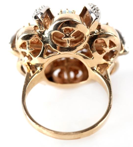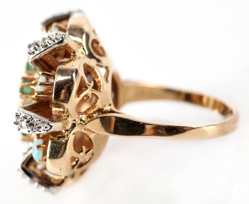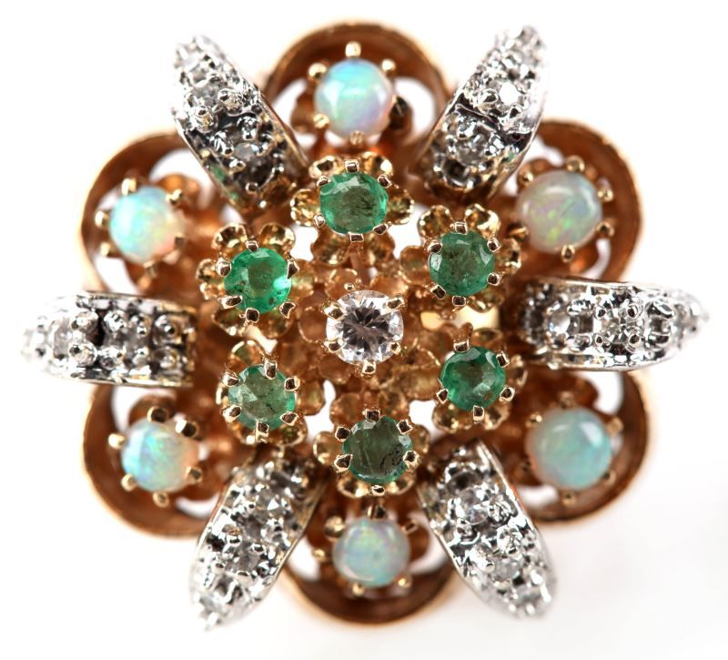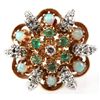 VINTAGE LADIES 14K YG DIAMOND, EMERALD & OPAL RING