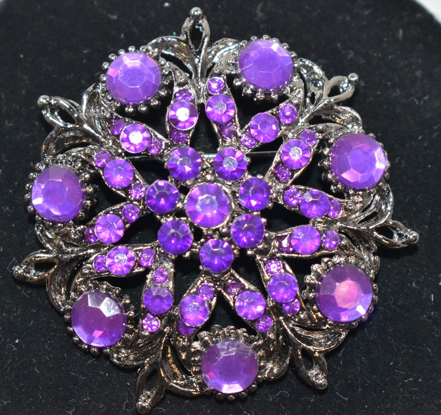 VINTAGE LADIES BROOCH WITH PURPLE STONES