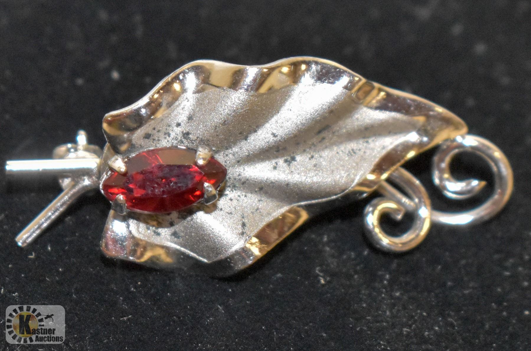 VINTAGE LADIES BROOCH WITH RED STONE