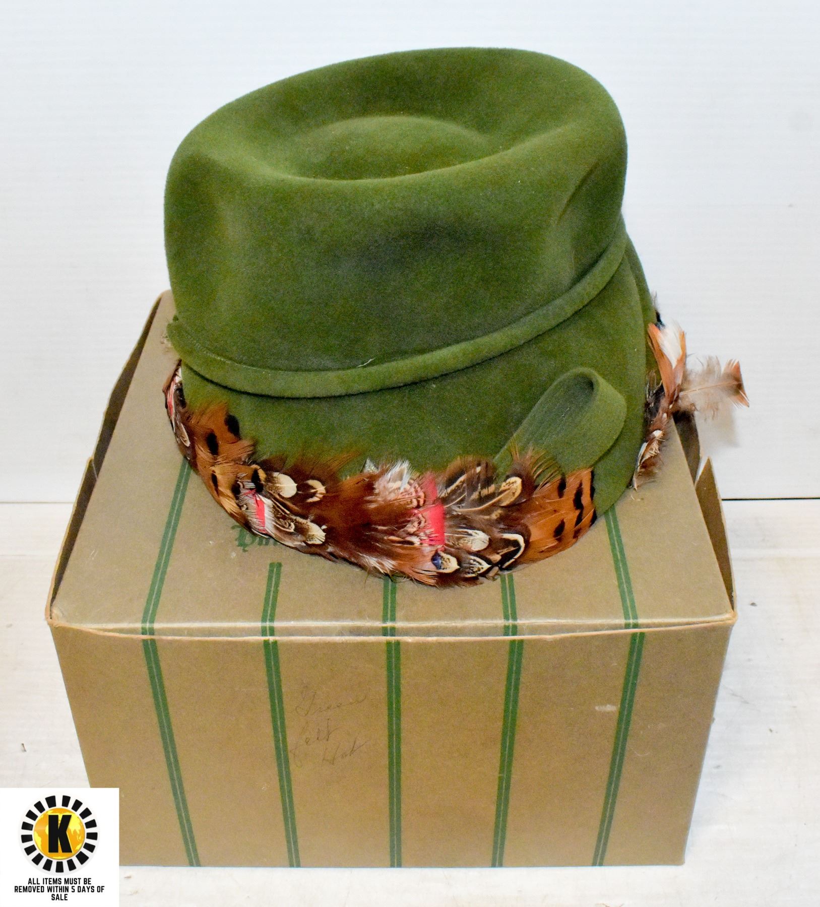 VINTAGE LADIES FELT FEATHERED HAT. GRACE