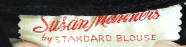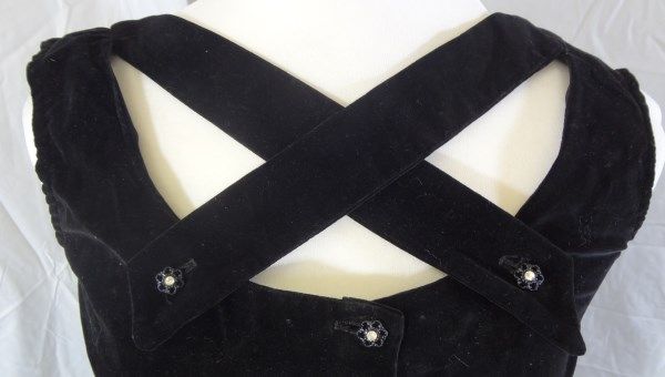 VINTAGE LADIES VELOUR LADIES TANK TOP. BOTH SIDES ARE RIPPED AT THE SEAM, AN EASY FIX! BEAUTIFUL BLACK FLOWER AND RHINESTONE BUTTONS. EST VALUE $20-25.00