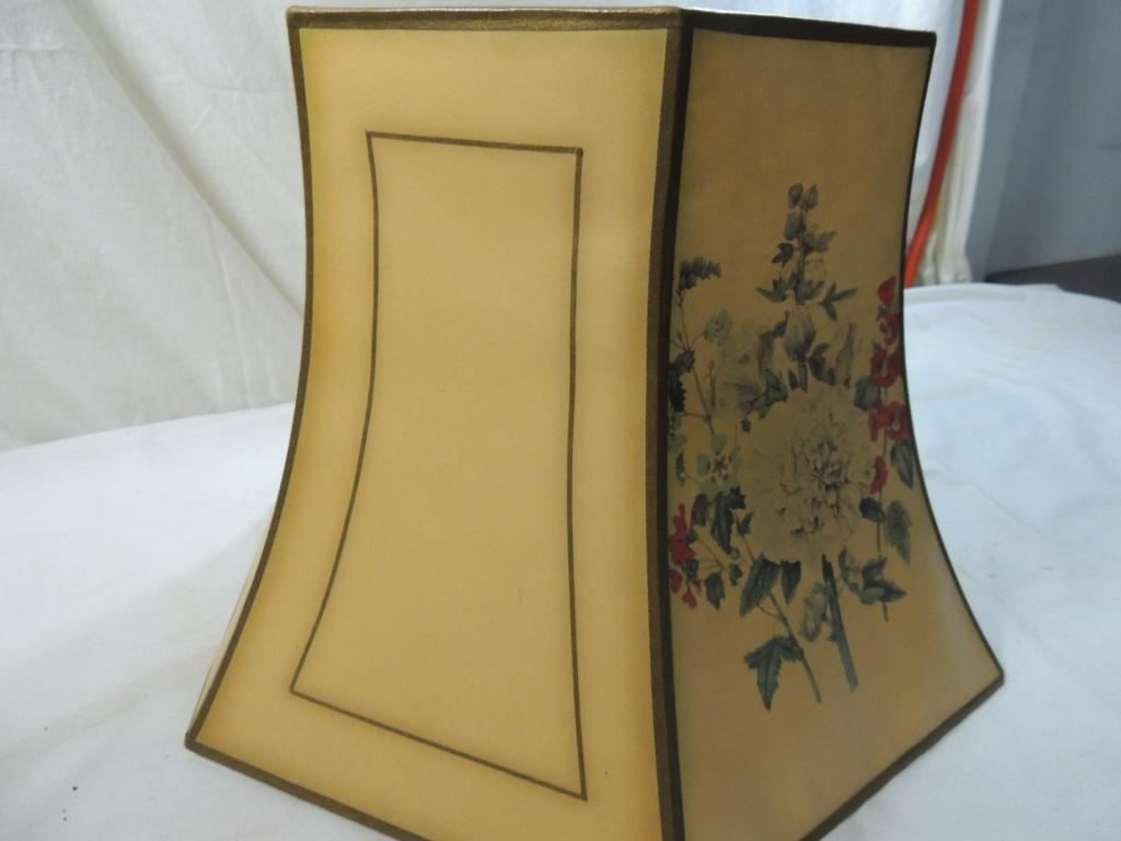 VINTAGE LAMP SHADE DECORATIVE LAMP SHADE. GREAT CONDITION FLORAL SHADE AS SHOWN SEE PHOTO FOR MORE DETAILS.