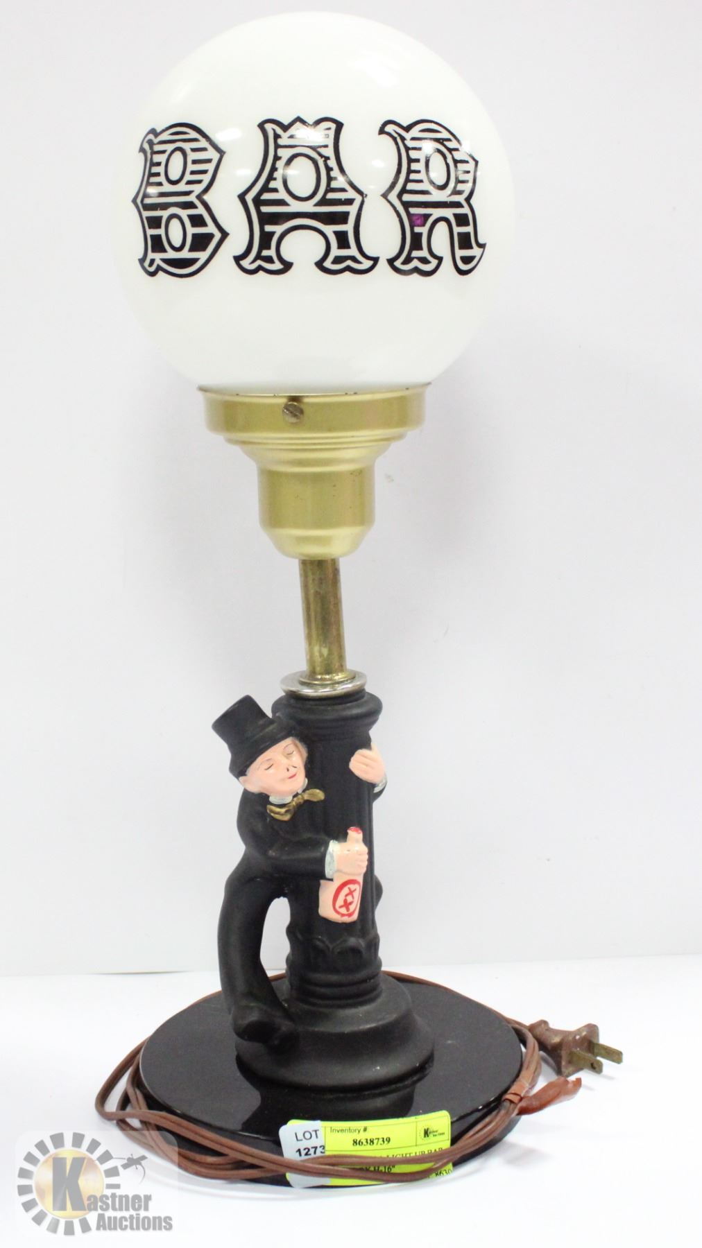 VINTAGE LAMP W/ A LIGHT UP BAR EMBLEM APPROX H-16"