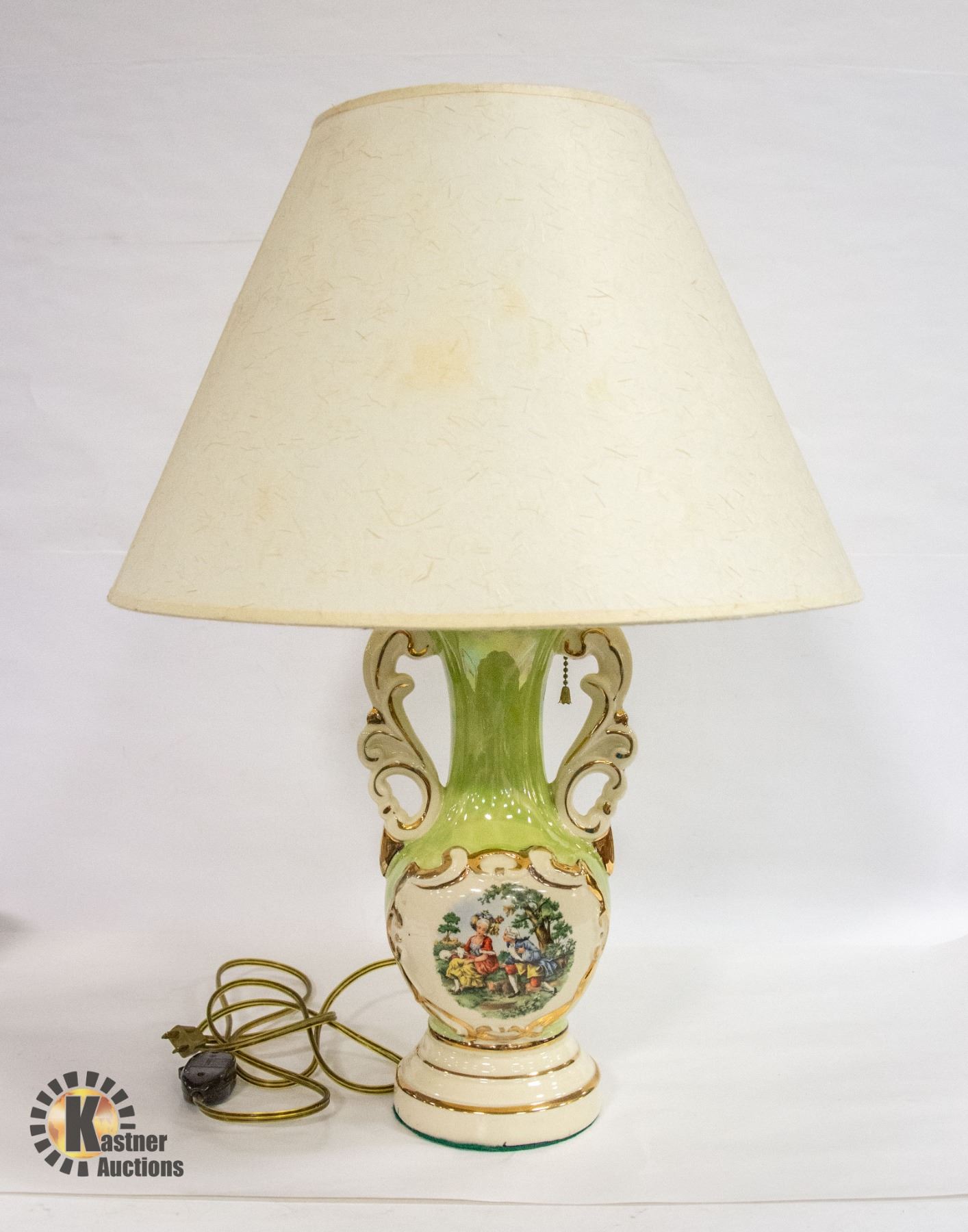 VINTAGE LAMP WITH FRENCH COURTING SCENE H-25
