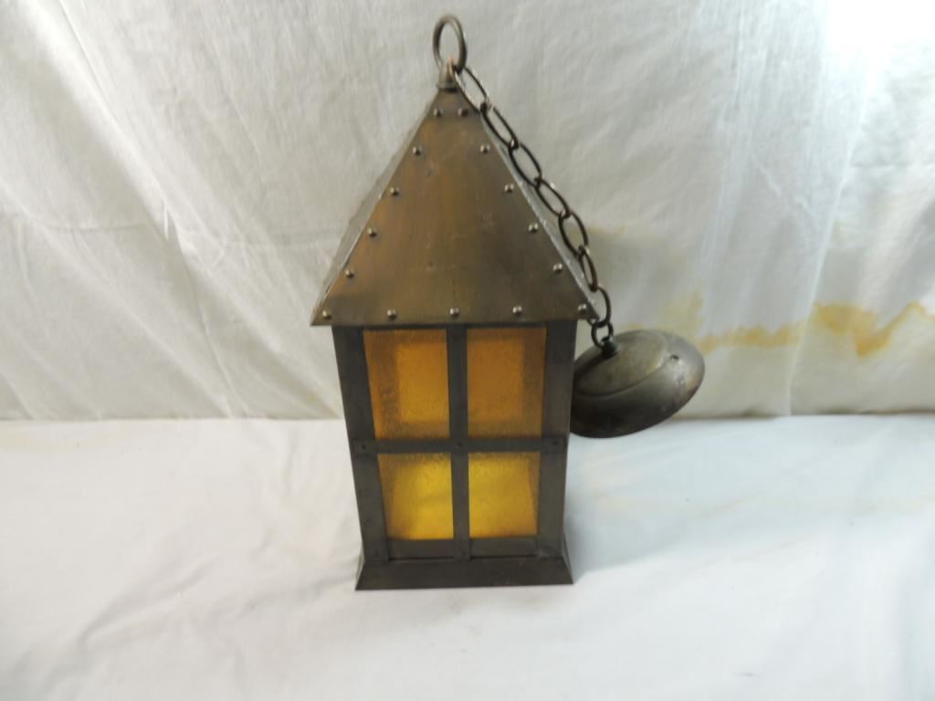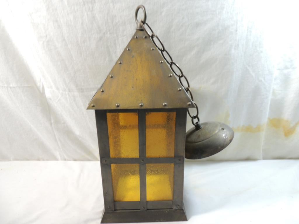 VINTAGE LANCASTER LANTERN HANGING LANTERN LIGHT FIXTURE AS SHOWN SEE PHOTO FOR MORE DETAILS.
