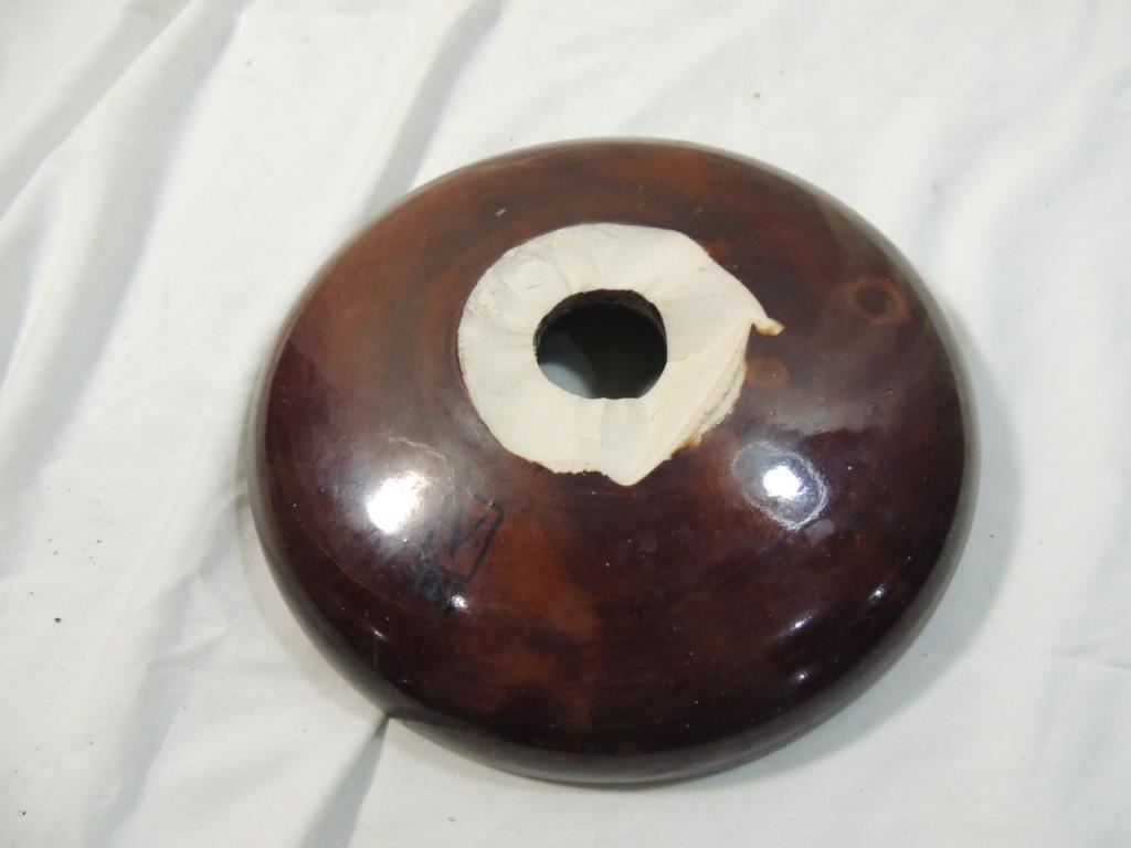 VINTAGE LARGE BROWN CERAMIC INSULATOR BASE
