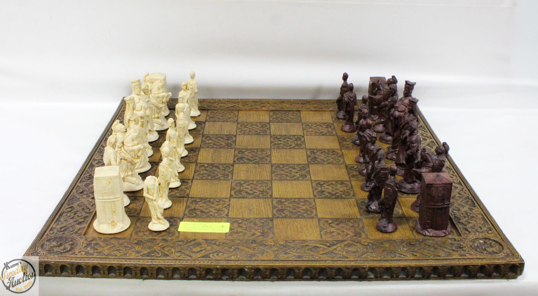 VINTAGE LARGE GERMAN MEDIEVAL THEMED CHESS SET