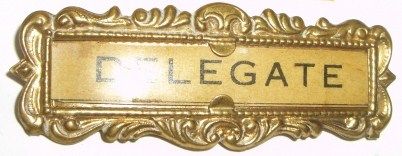 VINTAGE LARGE GOLD *DELEGATE PIN* LOOKS TO BE GOLD BUT CAN NOT SEE STAMP MEASURES APPROX 2 INCHES LONG!!! ***Coin, Currency & All Items Listed in this auction - Grades, Conditions and Values are not Safe Deposit Coins LLC Responsibilty. Grades, Condition and Values are determined by Consigner(s) & Buyers ONLY***