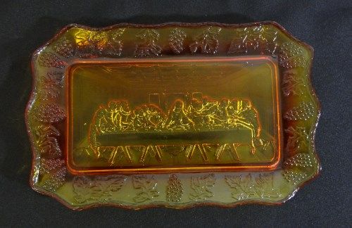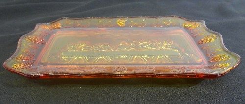 11"x7" RECTANGULAR GLASS PLATE. BROWN/ YELLOW GLASS. NO MARKINGS.