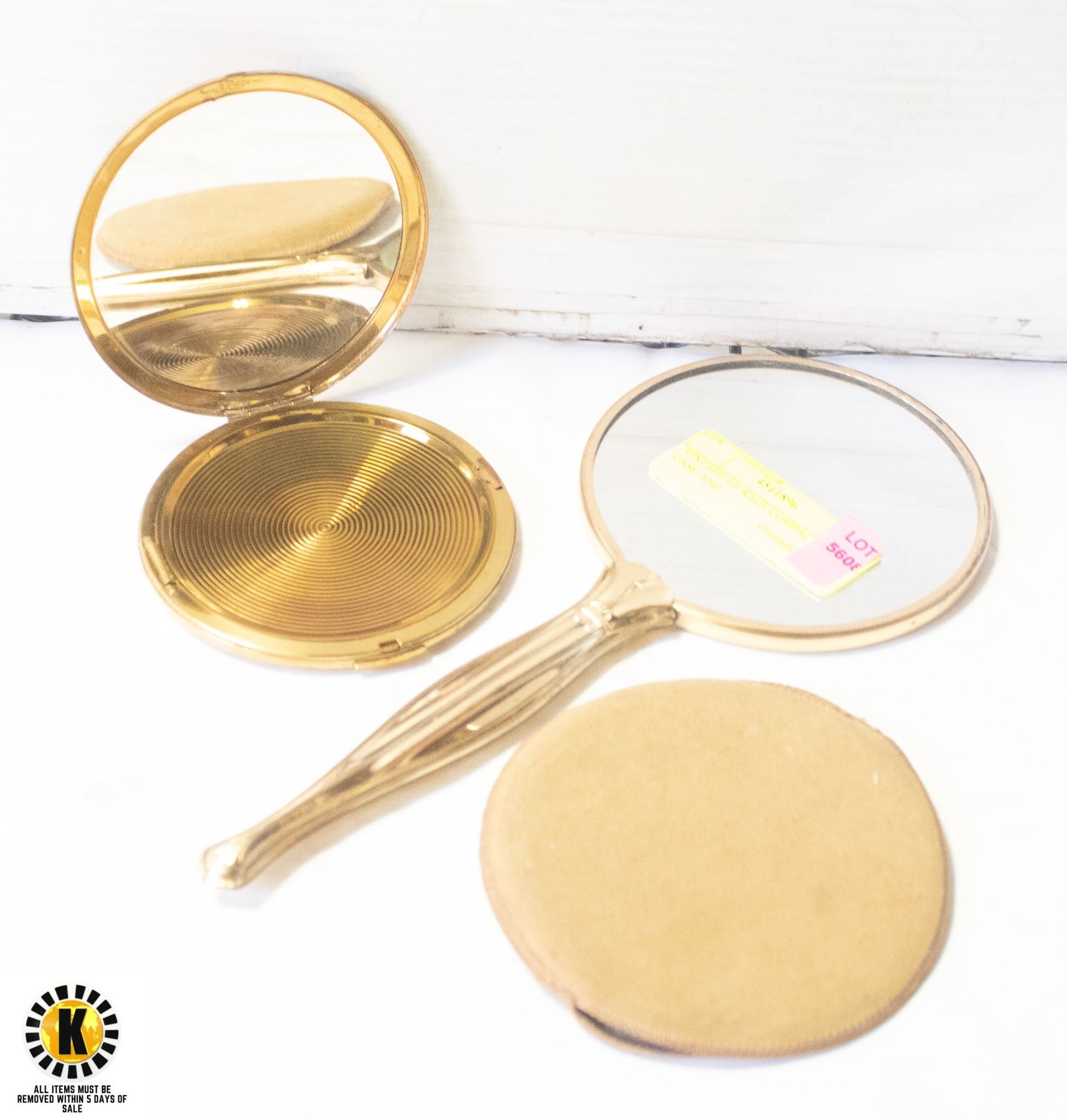 MADE IN USA GOLD TONED METAL DRESSER MIRROR BOTH MIRRORS