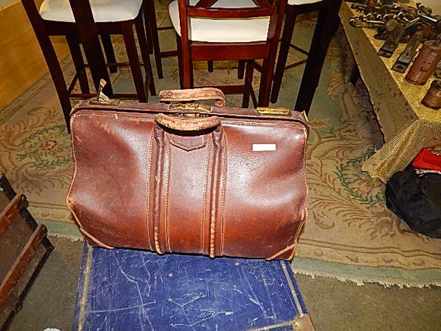 VINTAGE LEATHER OVERNIGHT BAG WITH KEY