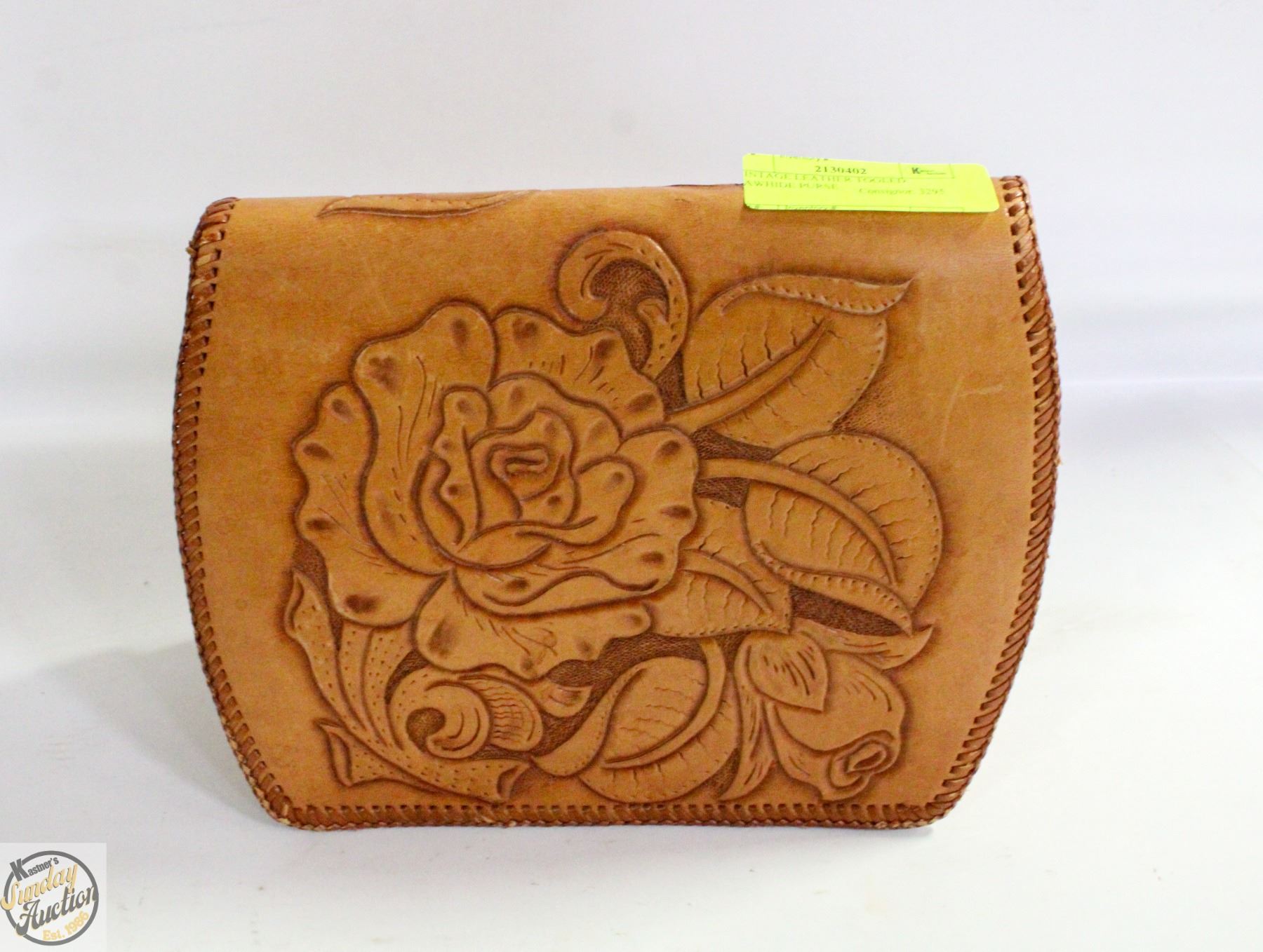 VINTAGE LEATHER TOOLED RAWHIDE PURSE