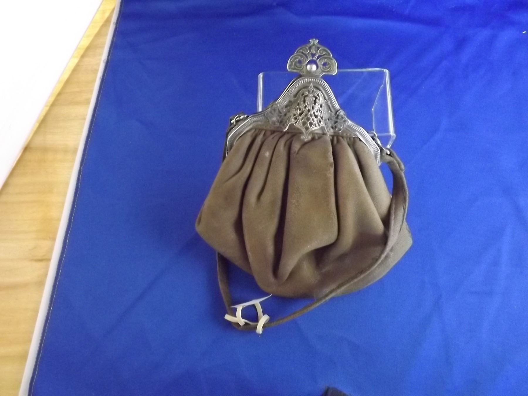 VINTAGE LEATHER W/ SILVER CLASP CLUTCH STYLE PURSE