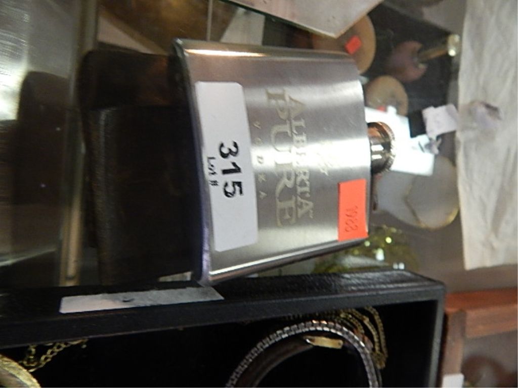 VINTAGE LEATHER WALLET AND ALBERT PURE VODKA MINI FLASK